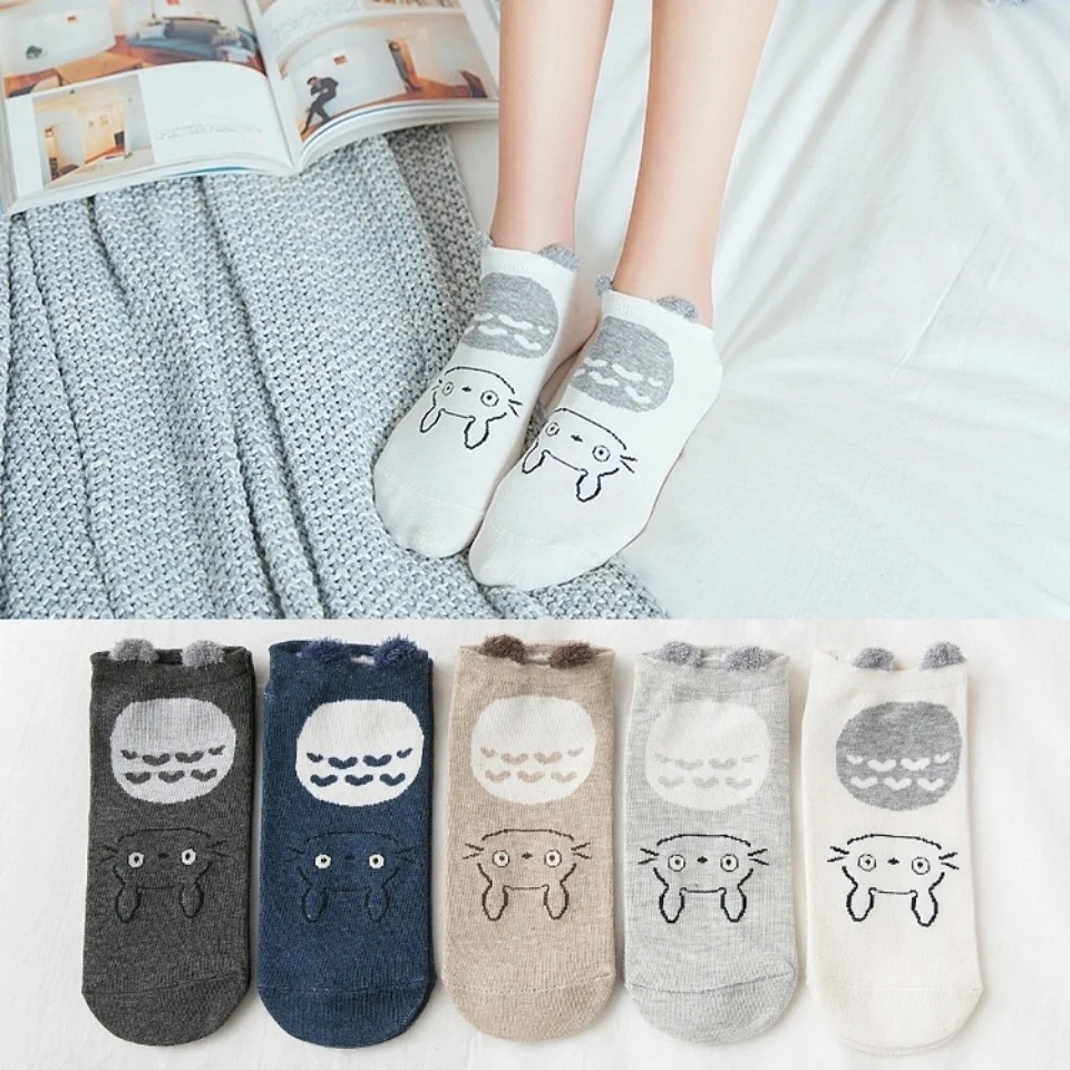 Милые Удобные женские короткие носки из чистого хлопка с рисунком в японском стиле, 5 парлот, высококачественные модные смешные носки на все сезоны