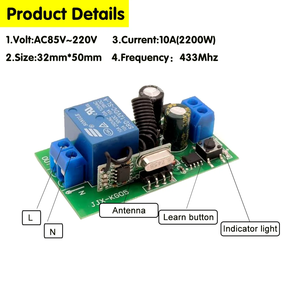 Беспроводной пульт дистанционного управления, 433 МГц, 220 В переменного тока, в, 10 А, 1-канальный релейный модуль, приемник, ВКЛ.ВЫКЛ., пульт дистанционного управления для светодиодных ламп сделай сам