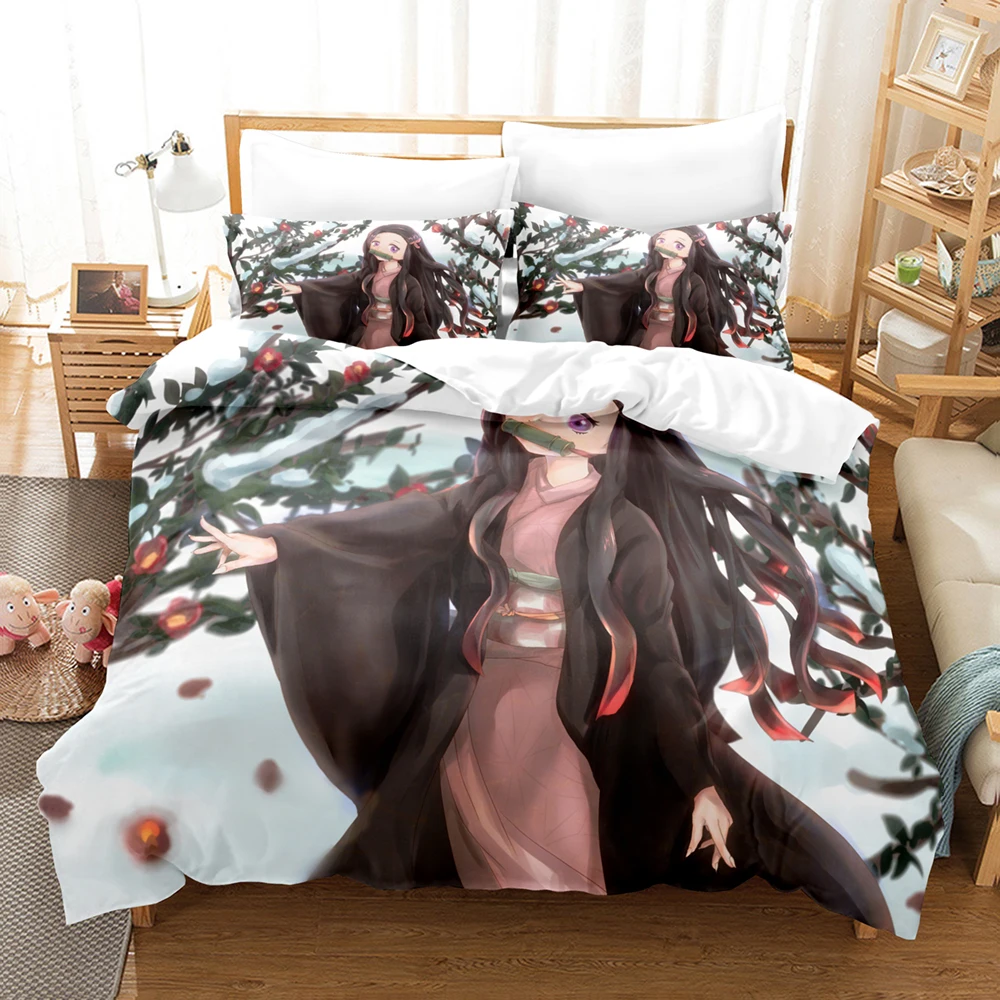 Комплект постельного белья Kamado Nezuko, односпальный Комплект постельного белья для односпального, двуспального, большого размера, с рассекающим демонов покрытием, для детской комнаты, комплект с чехлом для односпального белья, аниме 3D 039