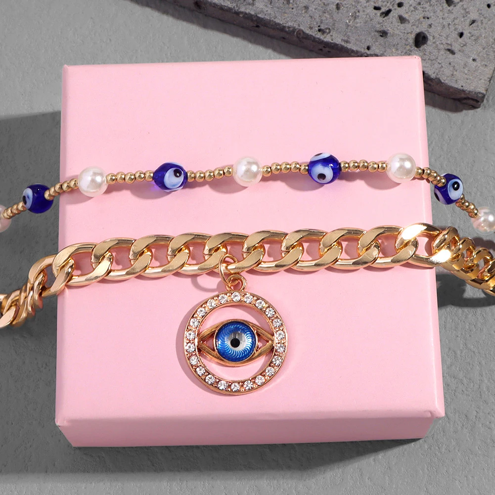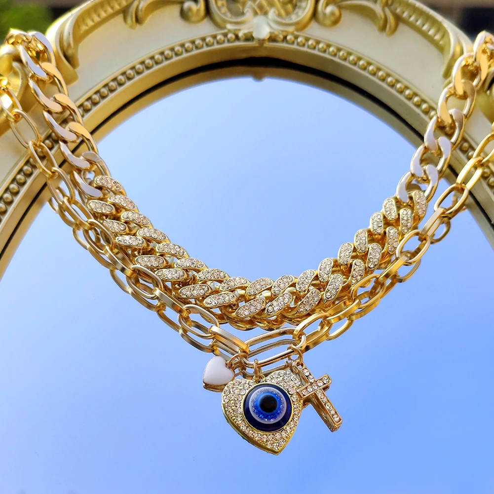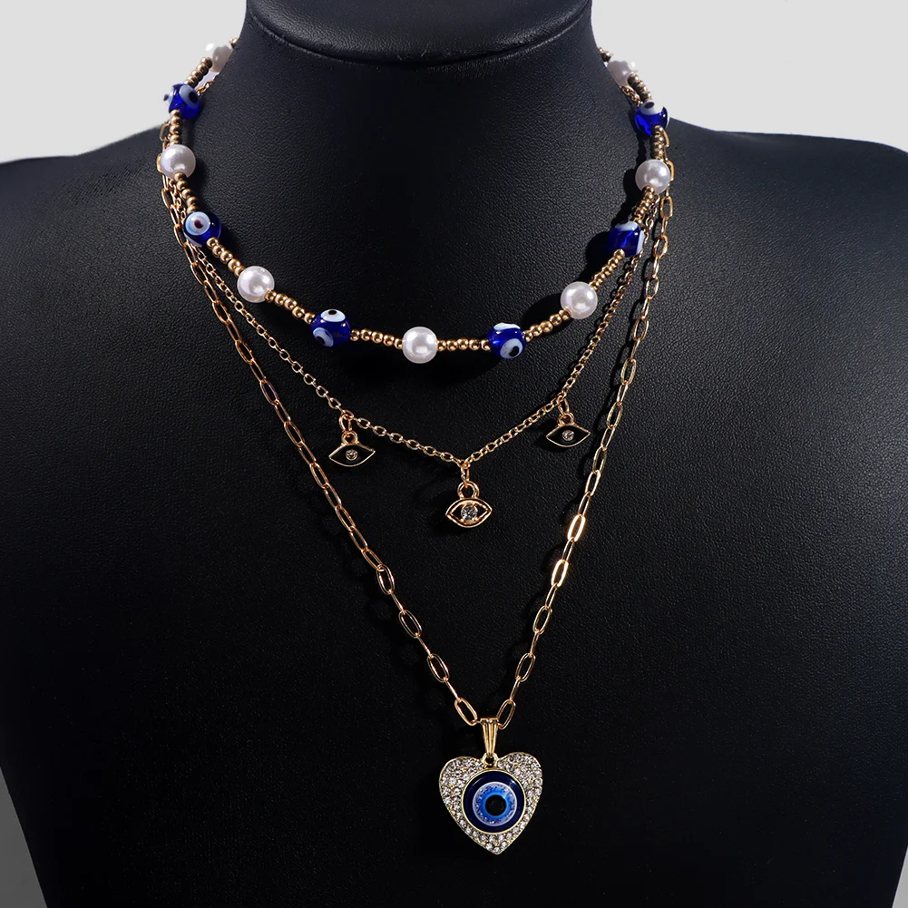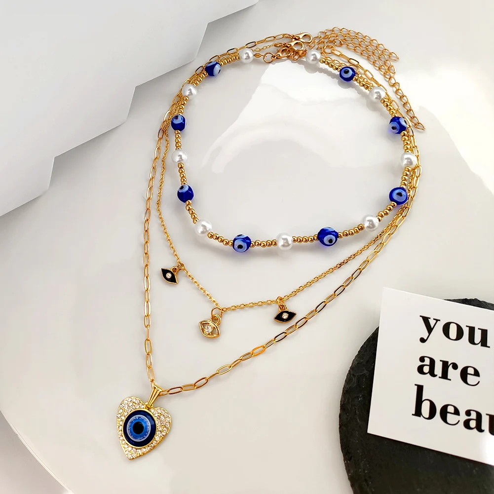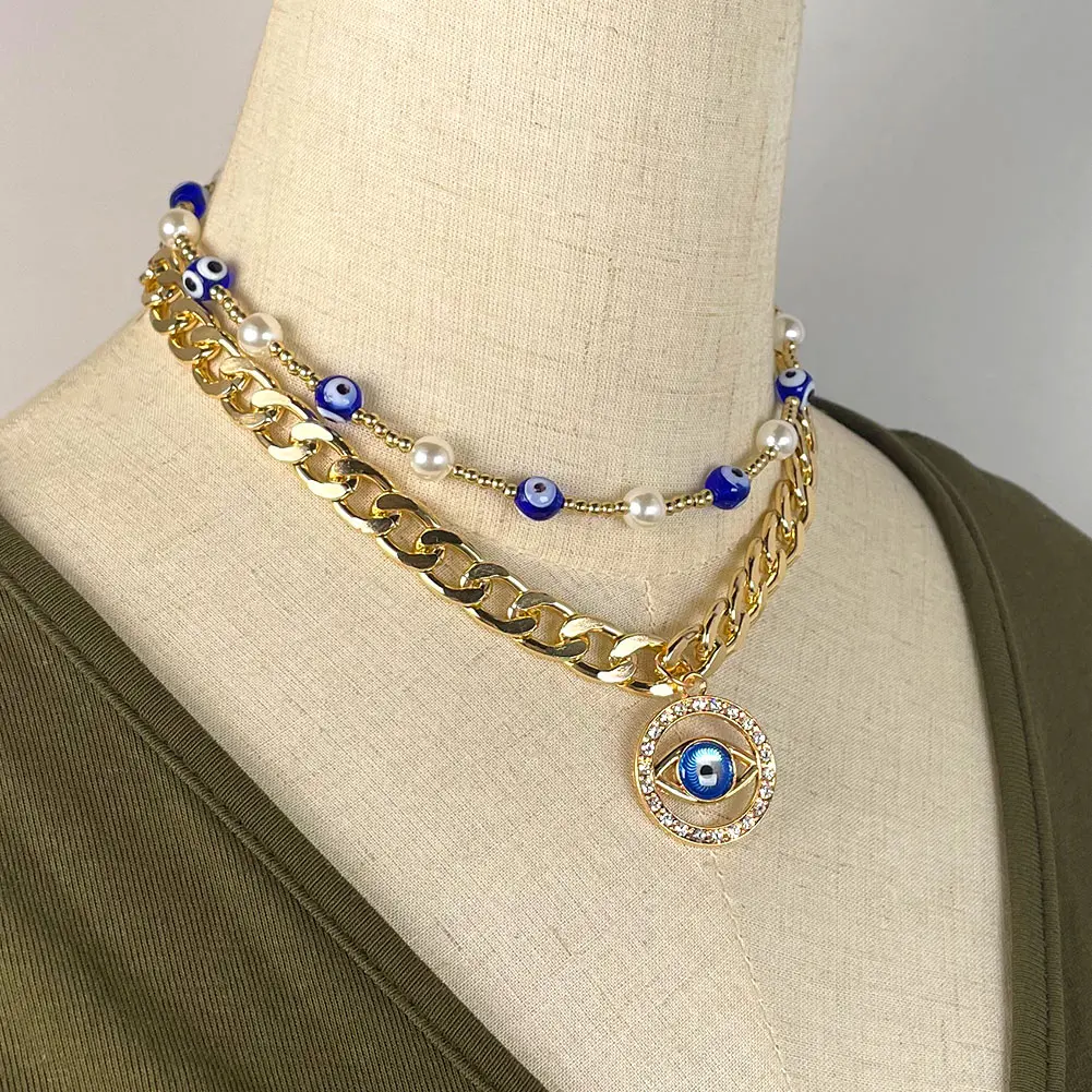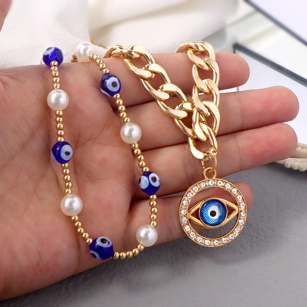 Ожерелье с кулоном в стиле хип-хоп, рок, турецкие глаза, многослойное модное ожерелье-чокер с жемчугом и бисером, новые украшения, оптовая продажа