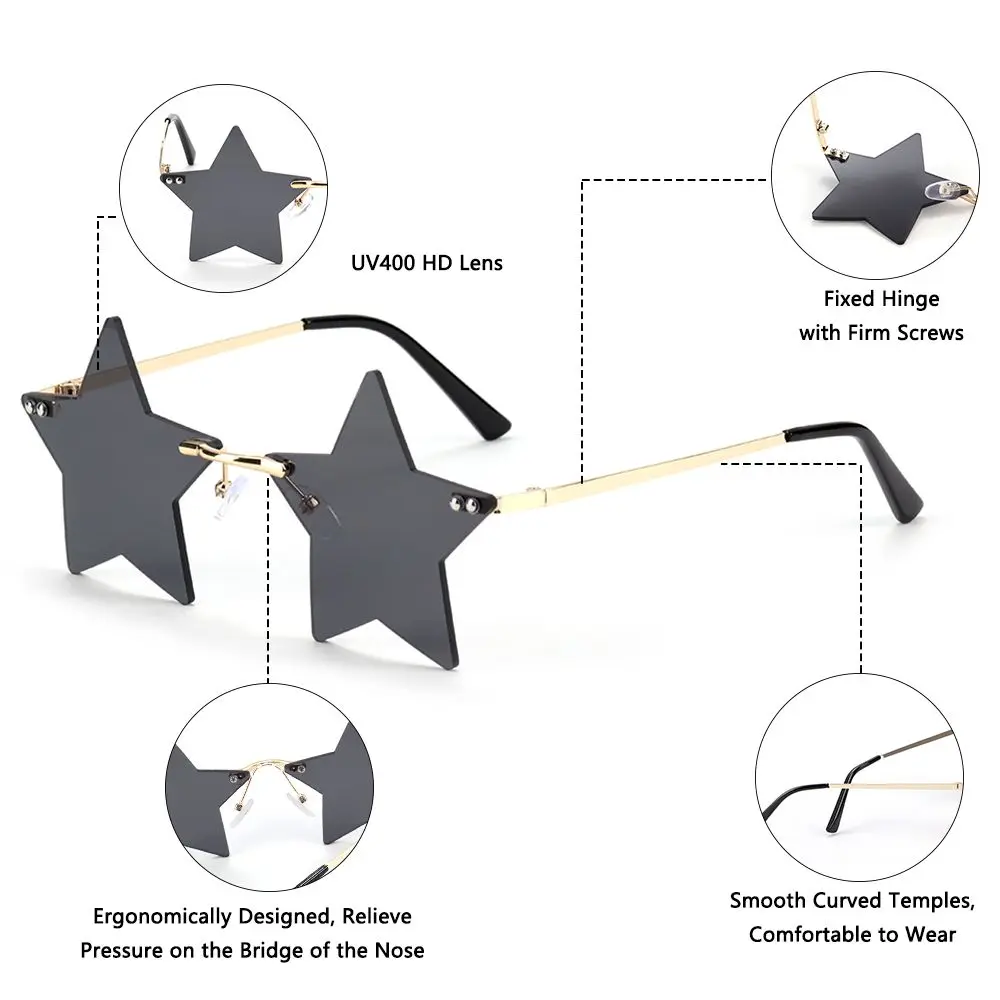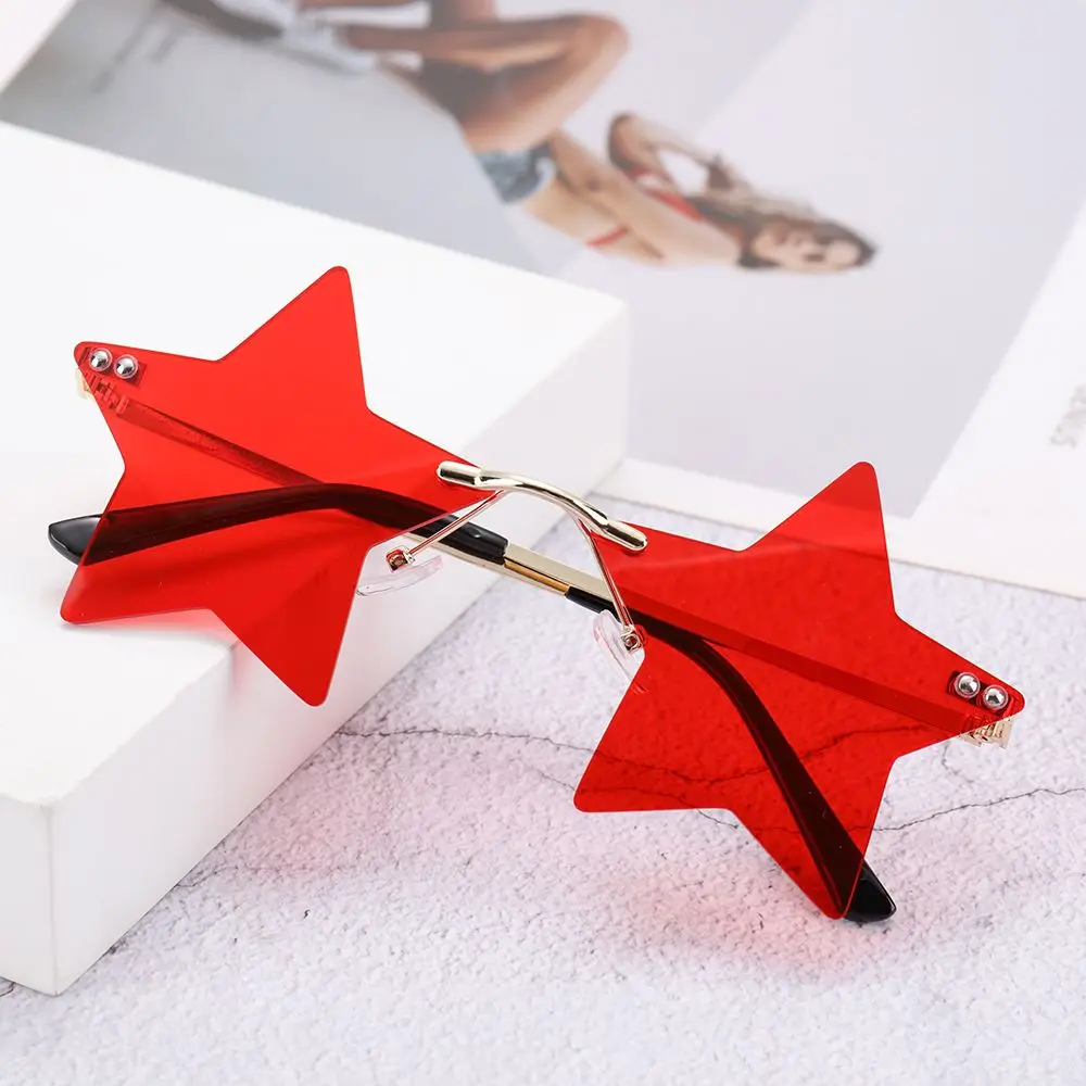 Солнцезащитные очки без оправы в форме звезды, модные солнцезащитные очки для женщин и мужчин, праздничные очки, забавные очки с пентаграммой, очки с рождественским декором