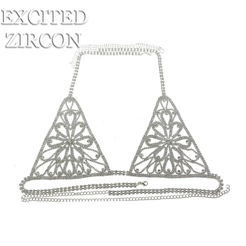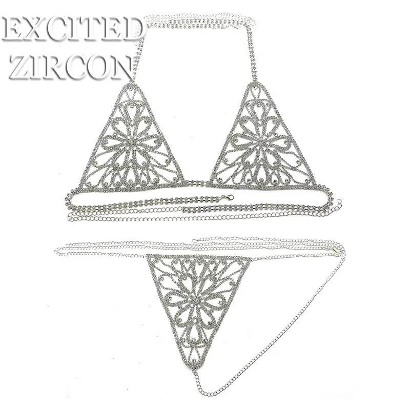 Роскошное бикини с цветами, цепочка для тела, жгуты для женщин, сексуальное нижнее белье, цепочка, блестящий бюстгальтер и стринги, комплект ювелирных изделий