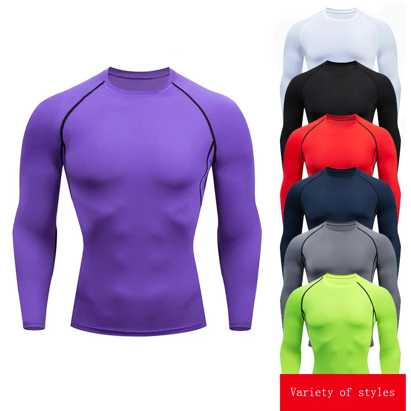 Мужская компрессионная Спортивная футболка размера плюс, Топ с длинным рукавом, одежда для спортзала, бега, фитнеса, плотная спортивная одежда, свитшот для походов