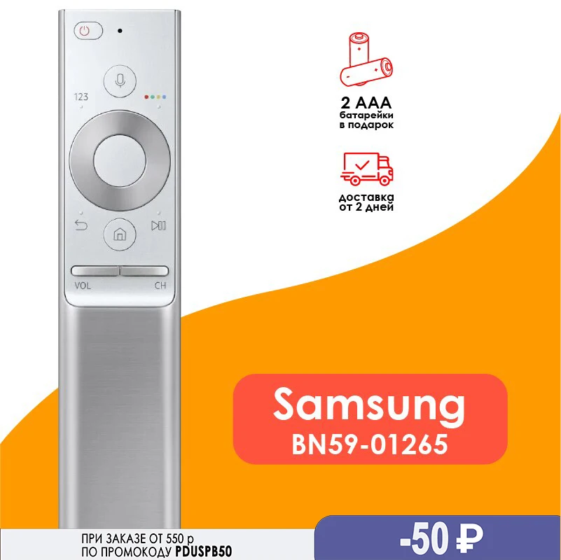 Премиальный пульт BN59-01265 голосовым управлением, в металлическом корпусе заменит модели прошлых годов выпуска в пластиковых корпусахBN59-01242A, BN59-01242C, BN59-01266A, BN59-01274A, BN59-01335B, BN59-01278A, BN59-01298D, BN59-01298G.Так же полностью заменяет модели предыдущих годов в металлических корпусах, BN59-01311B, BN59-01311G, BN59-01300F, BN59-01300G, BN59-01270A, BN59-01265A.Если ранее у вас не использовались пульты из выше перечисленных, то перед покупкой убедитесь, что ваш телевизор имеет модуль для соединения с интеллектуальными пультами Samsung.