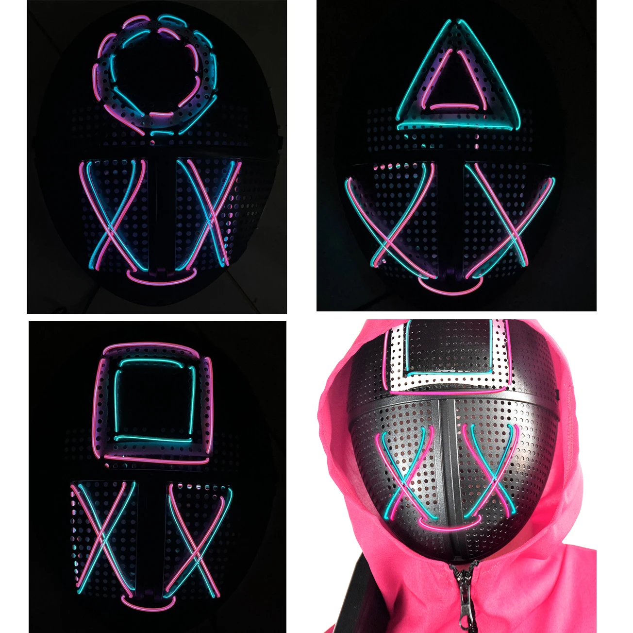 Сериал: игра кальмаровИспользуйте полипропиленовый материал, экологически чистый и прочный материал. Лучшее качество, чем пластиковые модели.Он принимает двухцветный холодный светильник, чтобы излучать светильник, и есть два режима, всегда ВКЛ и мигает.Источник: треугольная маска квадратного круга