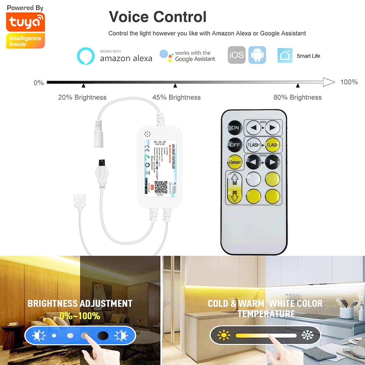 Новый Tuya WiFi + ИК-15-ключ двойной цвет контроль температуры может осуществить tuya/приложение smart life мобильный телефон дистанционный пульт. В то же время для более удобного управления яркостью Светодиодный индикатор добавлен ручной пульт дистанционного управления и изменяет цветовую температуру и сцену бара-светильник.