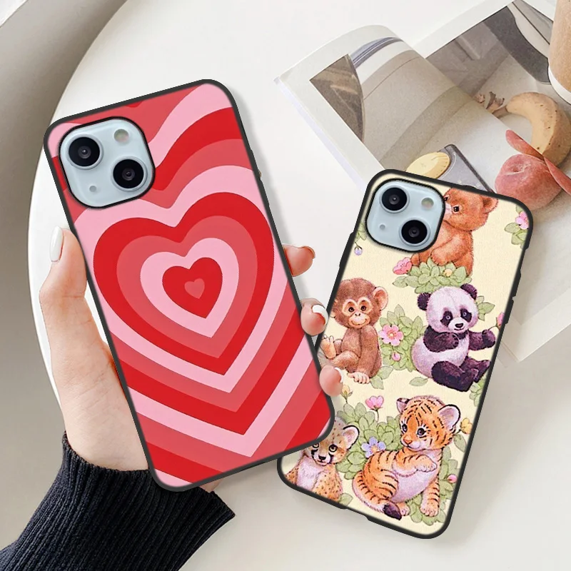 Чехол для iPhone 11, чехлы для iPhone 13, 12 Pro, 8, 7, XR, XS Max, X, 6S Plus, SE 2020, 12Mini, чехол с милым сердечком из силикона и ТПУ, черный чехол