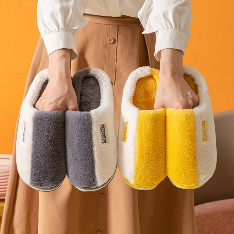 Женские зимние домашние тапочки, тапочки для влюбленных, двухцветная обувь, Нескользящие плюшевые удобные мягкие зимние шлепанцы для спальни