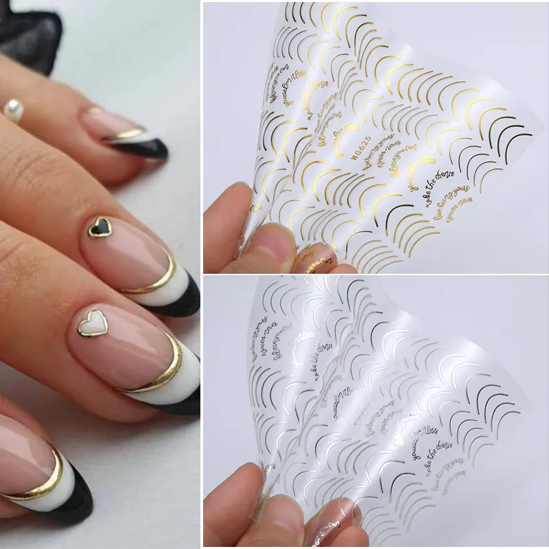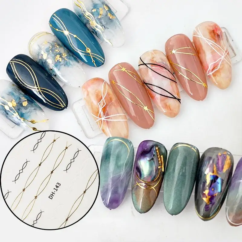 Золотистая Серебристая полосатая лента, 1 шт., 3D наклейки для ногтей, Геометрические линии, слайдер, французские ногти, Гель-лак, наклейки для маникюра, украшение своими руками