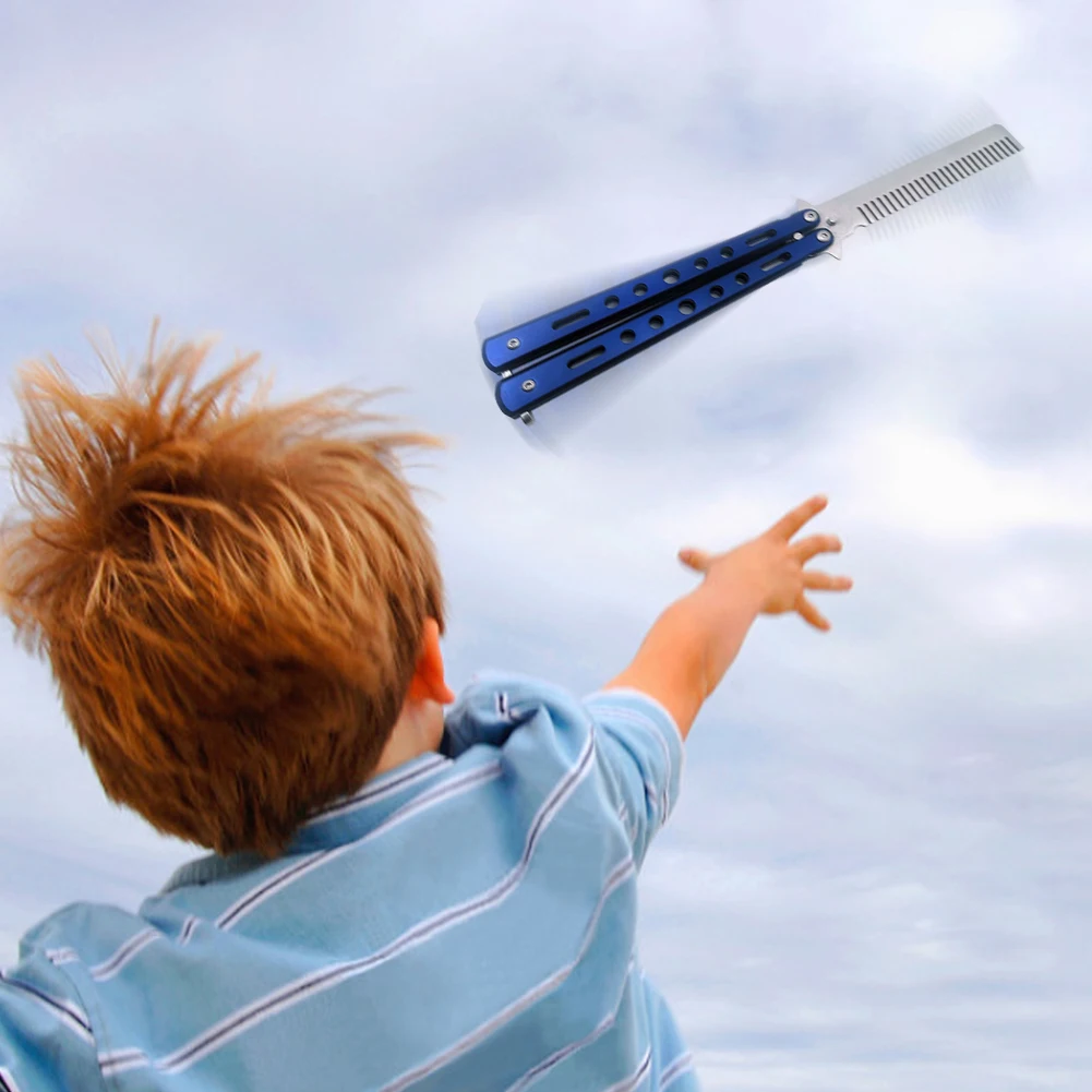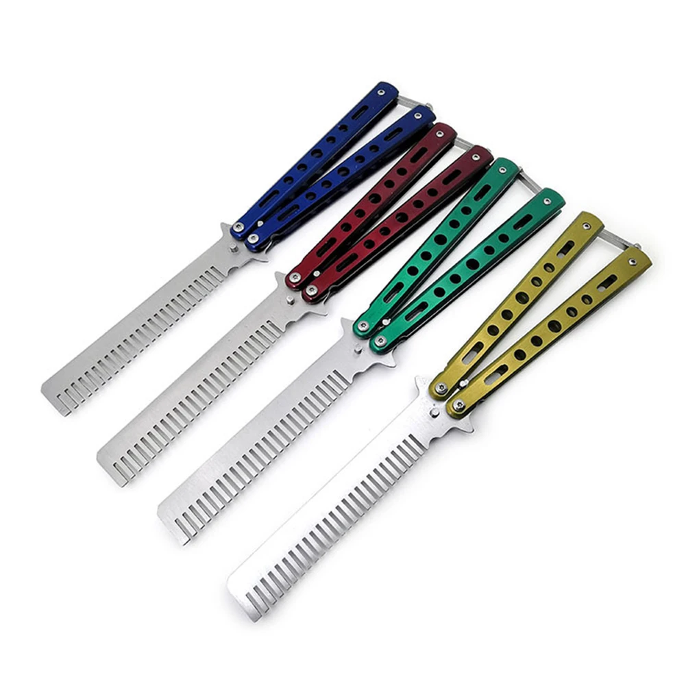 Острый нож-бабочка, Складная Расческа для тренировки, обучения, бороды, усов, щетка для парикмахерских тренировок, складной инструмент для укладки