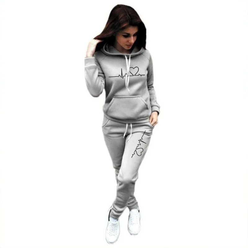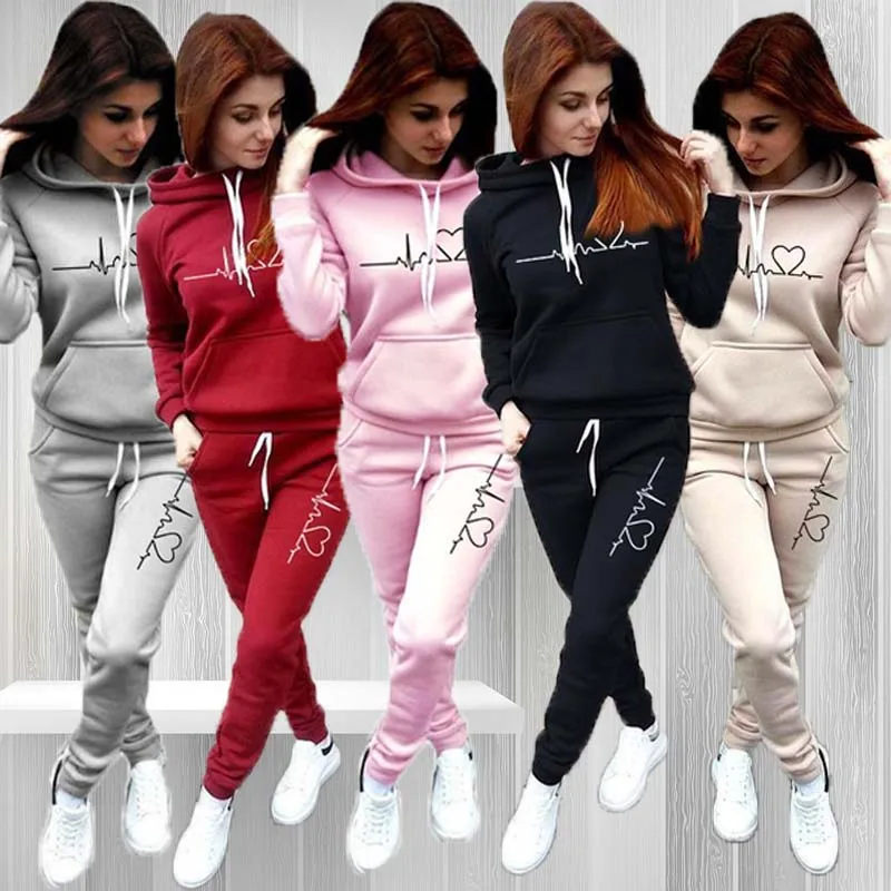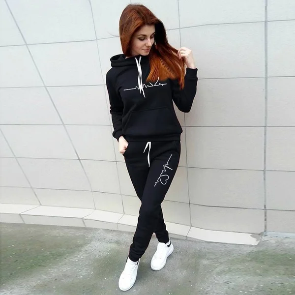 Новинка 2021, модная осенне-зимняя одежда, женский свитер с капюшоном и повседневные спортивные брюки с принтом ЭКГ, женские комплекты (4 цвета)