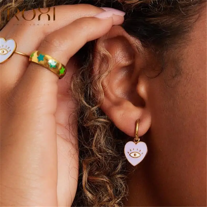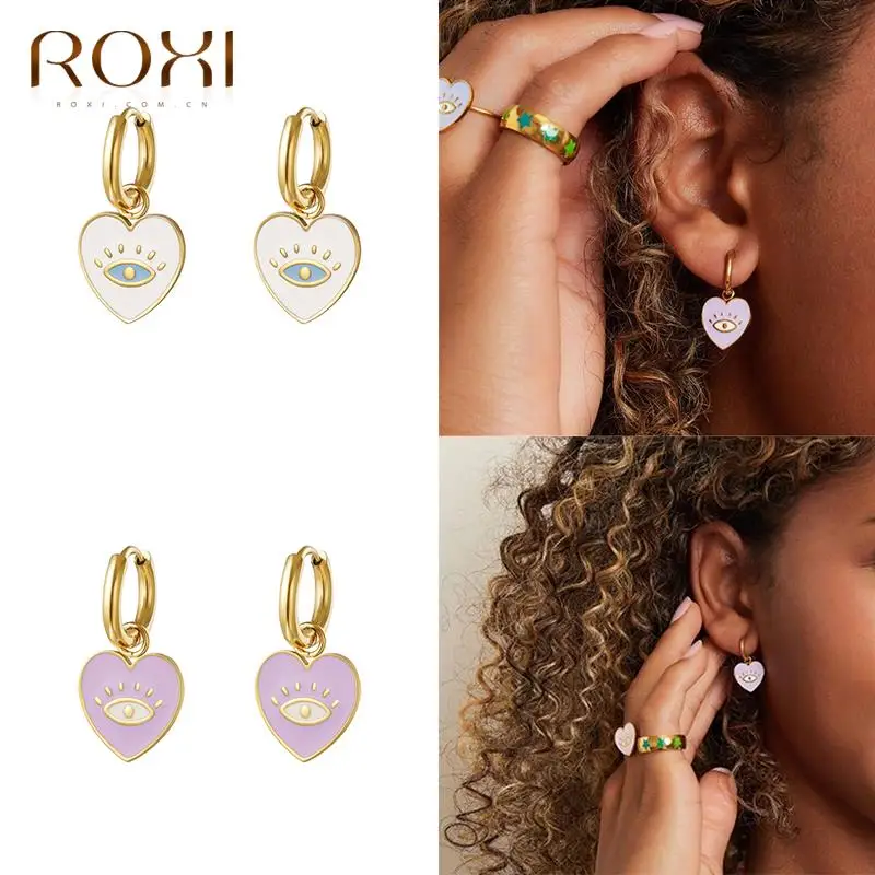 Женские серьги-кольца ROXI с эмалью в форме сердца и глаз, цветные серьги-подвески для девочек, ювелирные изделия, подарок на день рождения и свадьбу