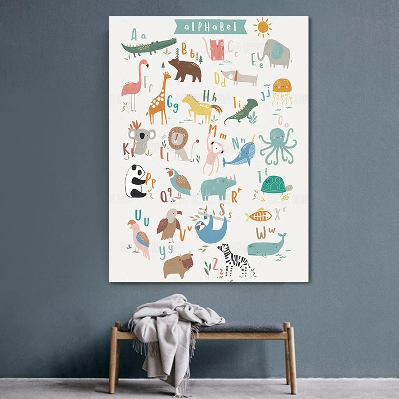 Животное плакат с алфавитом, образовательная АБС-буква, Картина на холсте, детский подарок, Настенная картина для детской комнаты, богемный декор для детской комнаты