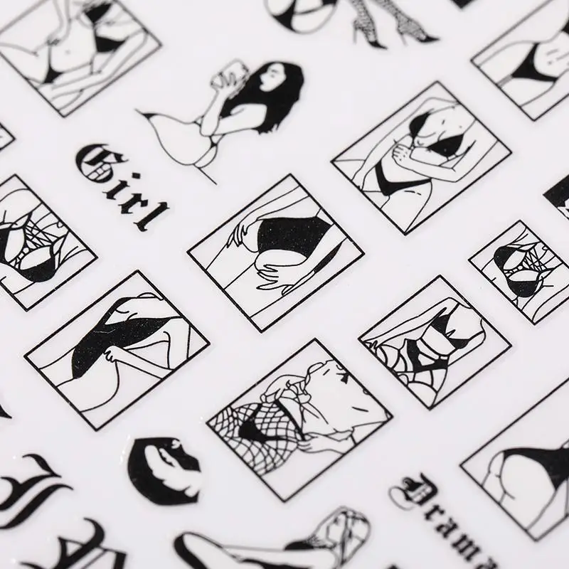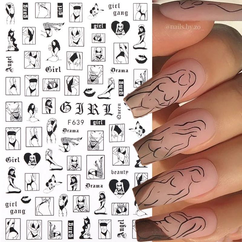 3D наклейки для ногтей сексуальная девушка эскиз абстрактные линии ногтей наклейки Дизайн ногтей Декор слайдеры Маникюр наклейки для ногтей маникюр