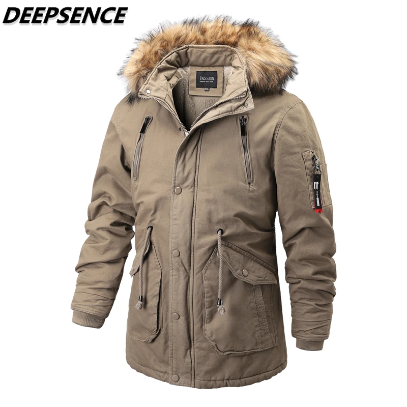Мужская повседневная длинная куртка с воротником из искусственного ...