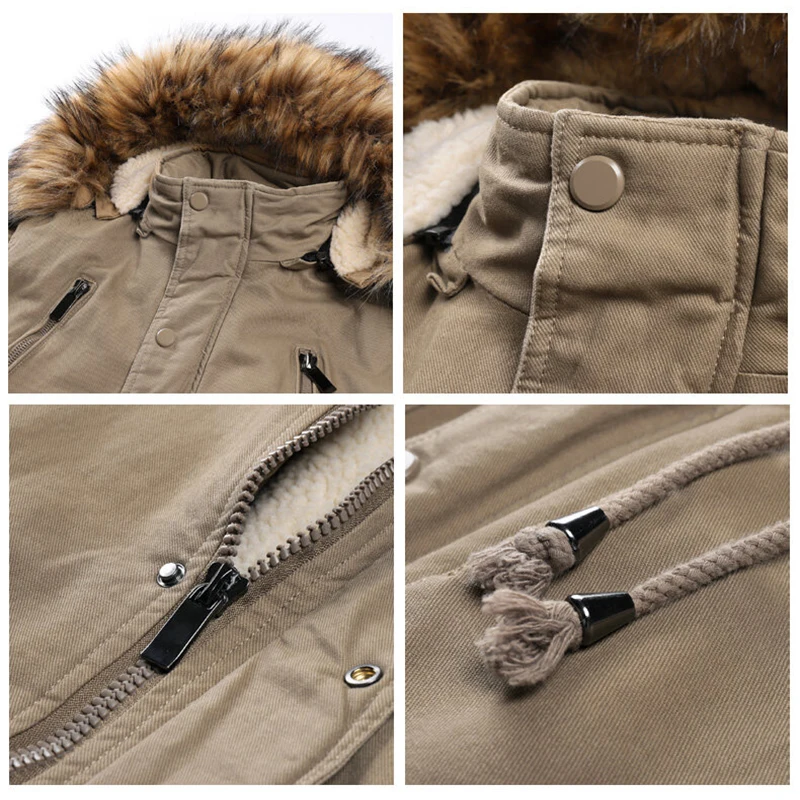Мужские парки, хлопковая куртка, Толстая теплая Вельветовая зимняя уличная английская куртка средней длины со съемным меховым воротником и капюшоном, мужская одежда