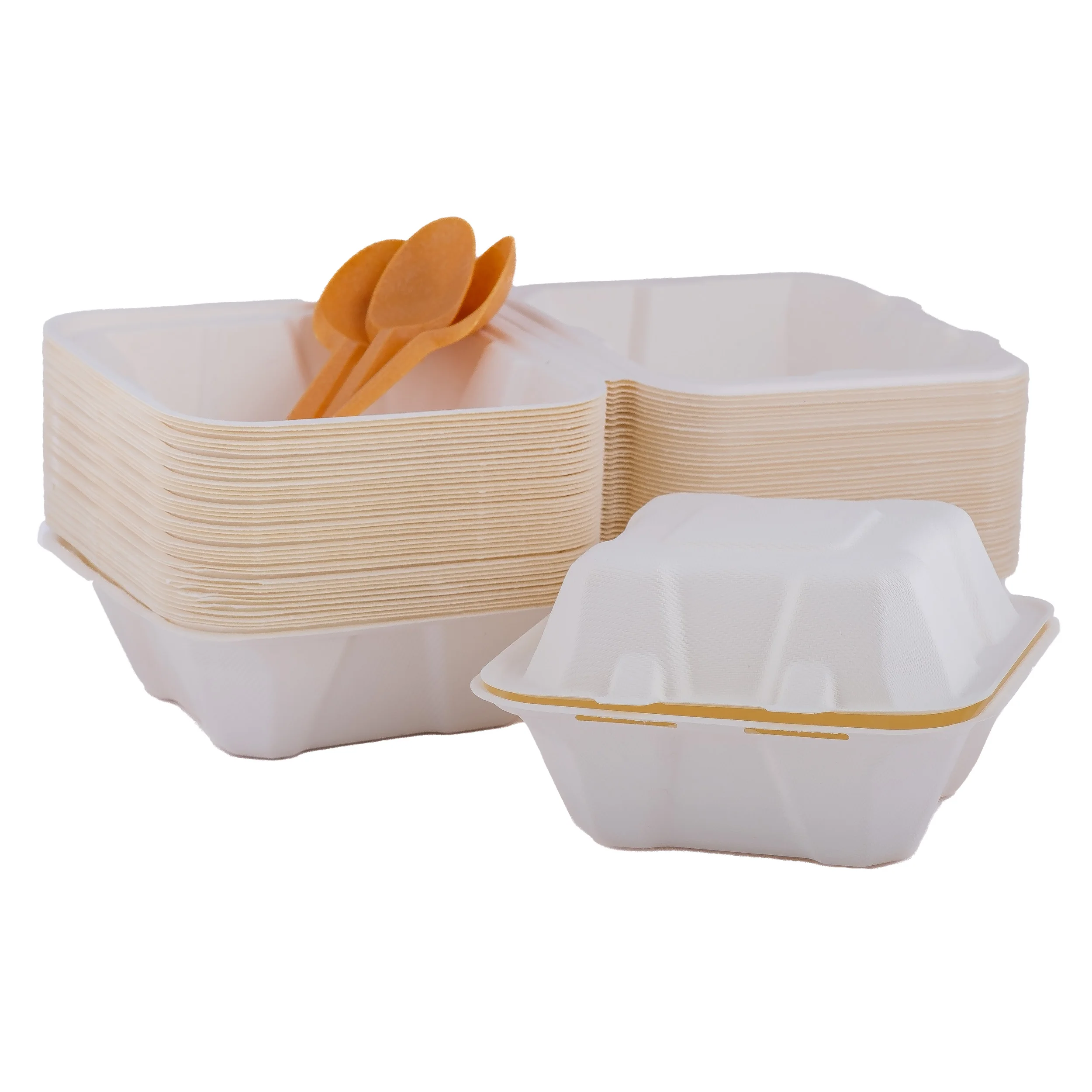Набор коробок для бенто торта из сахарного тростника 154 х 152 х 88 мм 50штупак