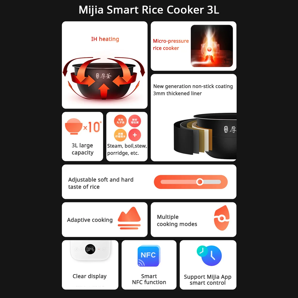 Умная рисоварка Xiaomi Mijia, многофункциональная электрическая Wi-Fi плита 3 л, работает с приложением, NFC, не липкая, с подогревом