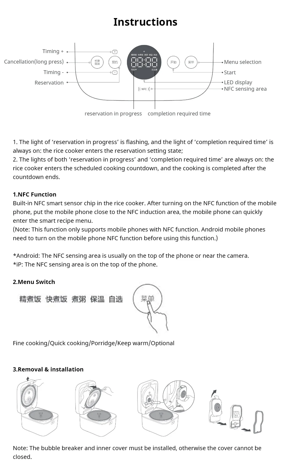1. Описание:Xiaomi Mijia умная рисоварка 3L многофункциональная электрическая плита приложение интеллигентая (ый) Оговорка NFC Функция IH нагрева Нелипкая тушеного мяса/Паровая/Отварить машина для приготовления пищи 220V 2. Особенности:-Xiaomi Mijia домашняя электрическая рисоварка, 3л, хороший помощник для приготовления отличной еды для вашей семьи.-Поддержка интеллектуального управления приложением, умное резервирование и несколько меню рецептов опционально.-Встроенный NFC интеллектуальный чип датчика, телефон может быстро войти в меню Смарт-рецептов.-IH электромагнитное объемное отопление и рисоварка под микро-давлением.-Регулируемая текстура риса, хороший вкус риса.-Действительно не липкий! Антипригарное покрытие нового поколения, антипригарная сковорода, легко моется, более прочная. 3. Параметры:Наименование товара:Xiaomi Смарт рисоварка 3лМодель:MFB2AMЕмкость: 3лОтопление: IH объемное ОтоплениеМатериал подкладки: алюминиевый сплавНоминальное напряжение:220V(Штепсельная вилка AU)Номинальная мощность: 1100 ВтНоминальная частота: 50 ГцБеспроводной: Wi-Fi IEEE 802.11b/g/n 2,4 ГГцРазмер: 301*251*201 ммВес: около 4,4 кг 4. Примечание:* Возможны незначительные различия в измерениях вручную.* Фактическое использование может немного отличаться в зависимости от конкретной ситуации.*Гарантия на продукт только для клиентов в Китае, Иностранные клиенты не могут быть гарантированы, пожалуйста, поймите. 5. Посылка:1 * рисоварка1 * рисовая ложка1 * ложка для супа1 * мерная чашка1 * пароварка1 * кабель питания1 * Руководство пользователя