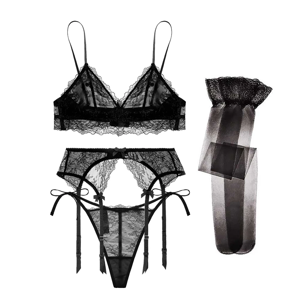 Комплект женского кружевного нижнего белья, прозрачный бюстгальтер ...