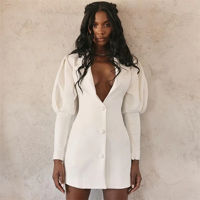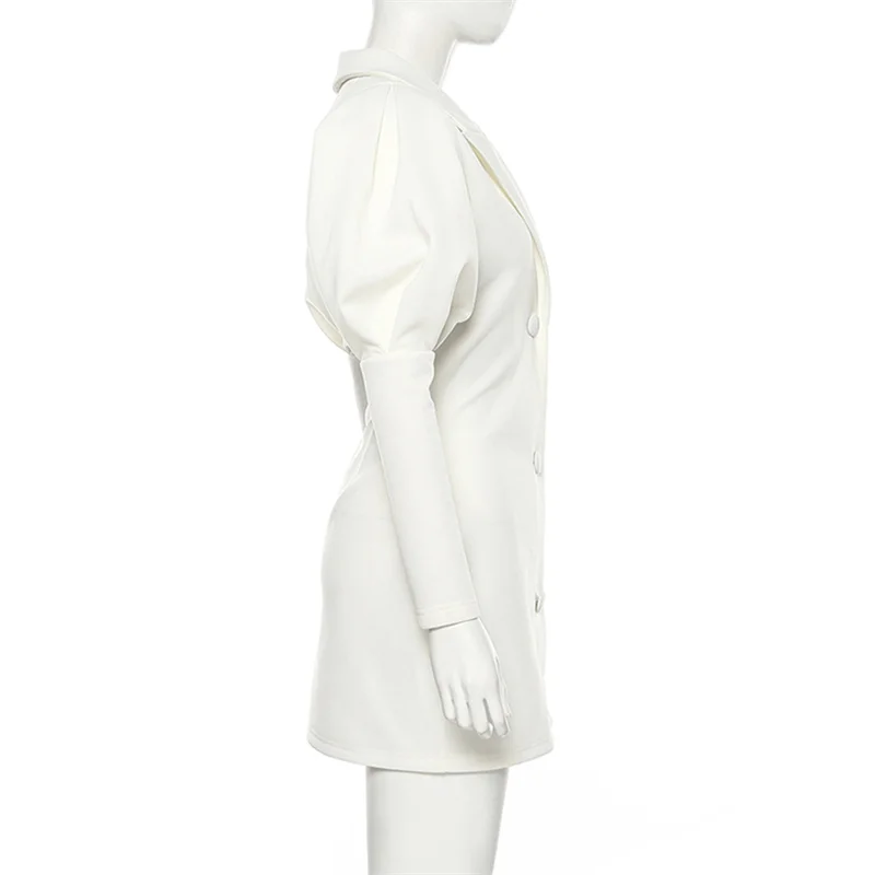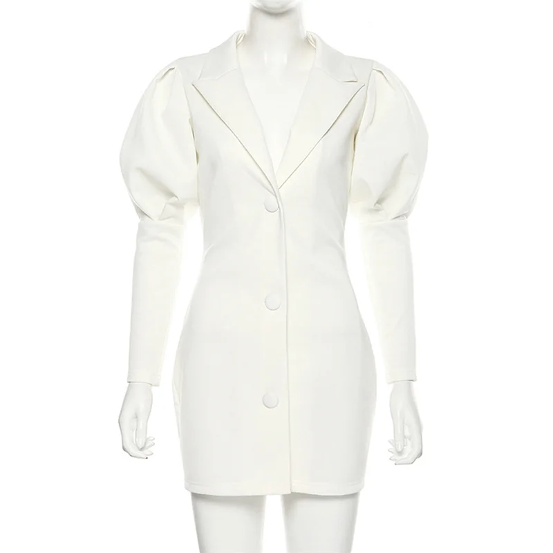 Женское однобортное офисное платье-блейзер с рукавами-фонариками