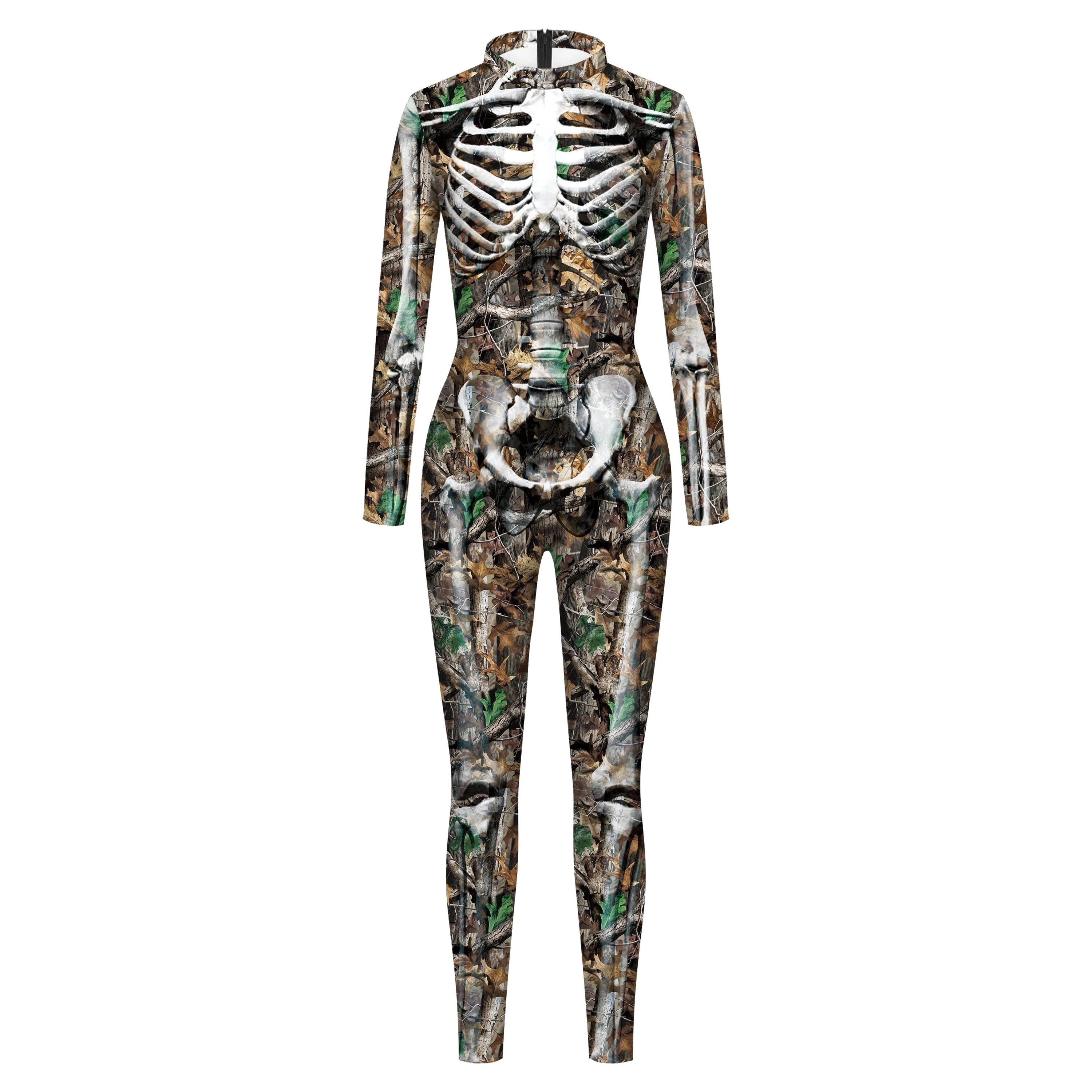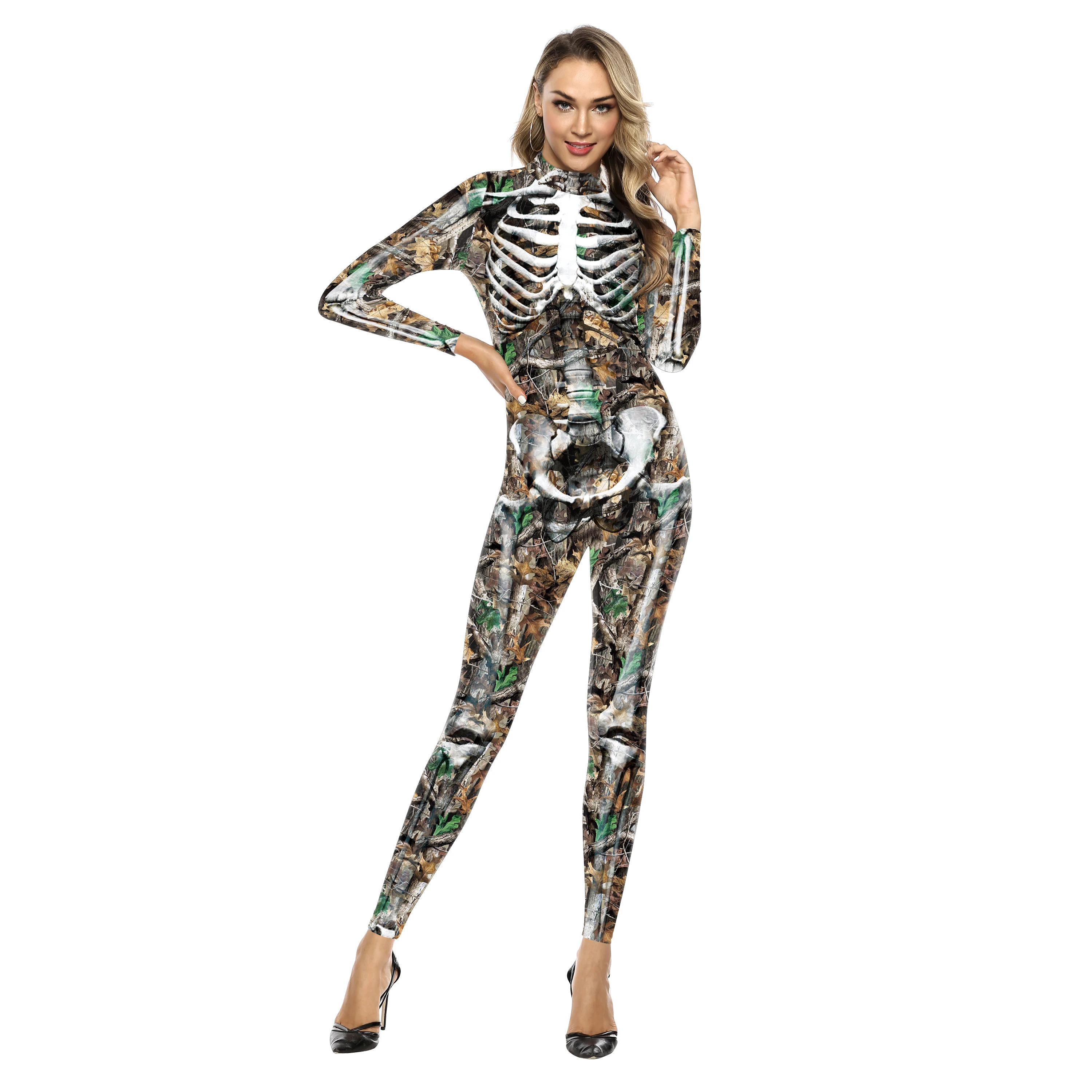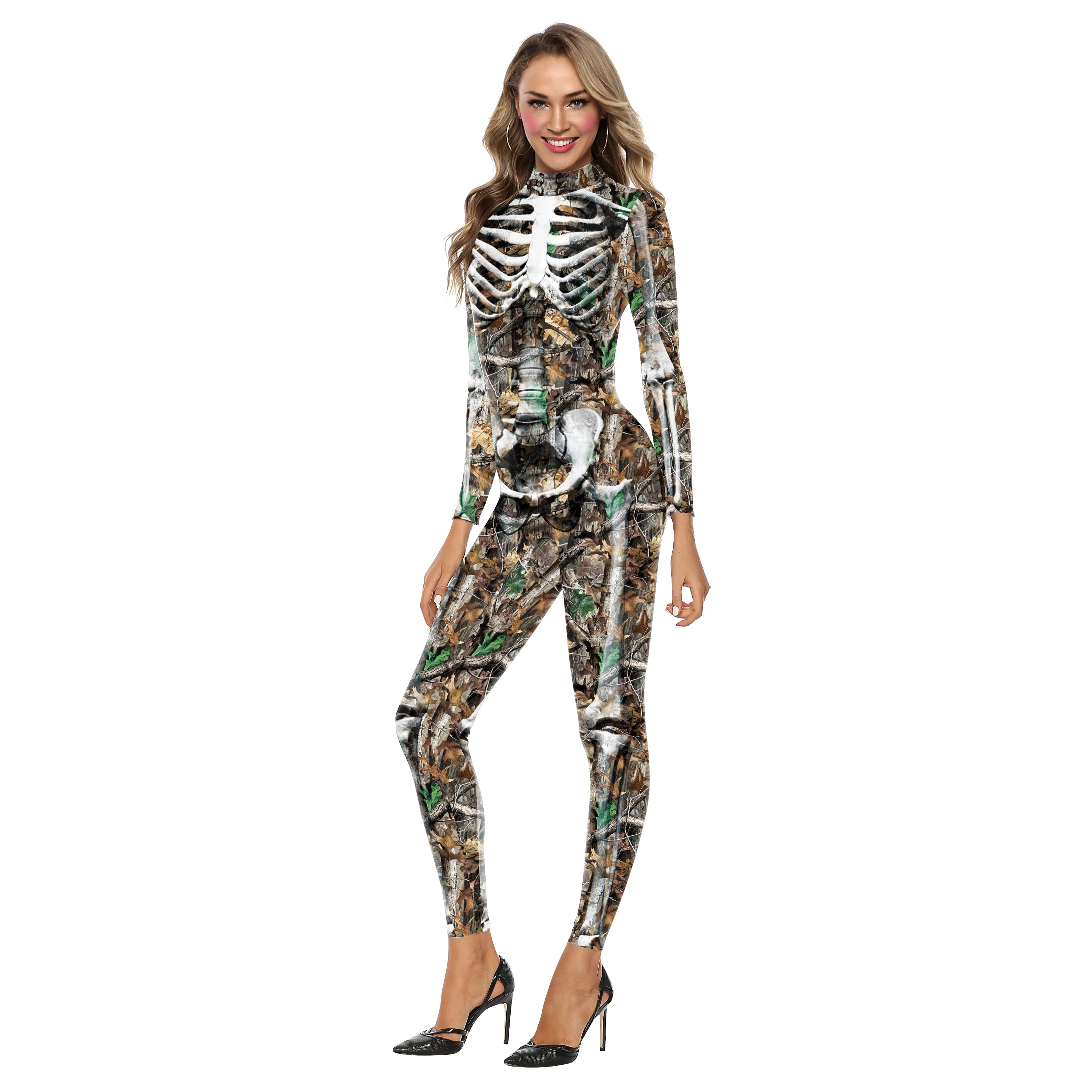 Женский костюм скелета человека на Хэллоуин с цифровой печатью, бод...
