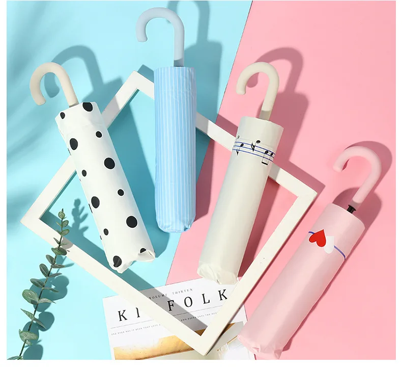 Японский маленький тройной складной зонт, черный клей, Солнцезащитный анти-складной зонт для женщин, зонт от солнца