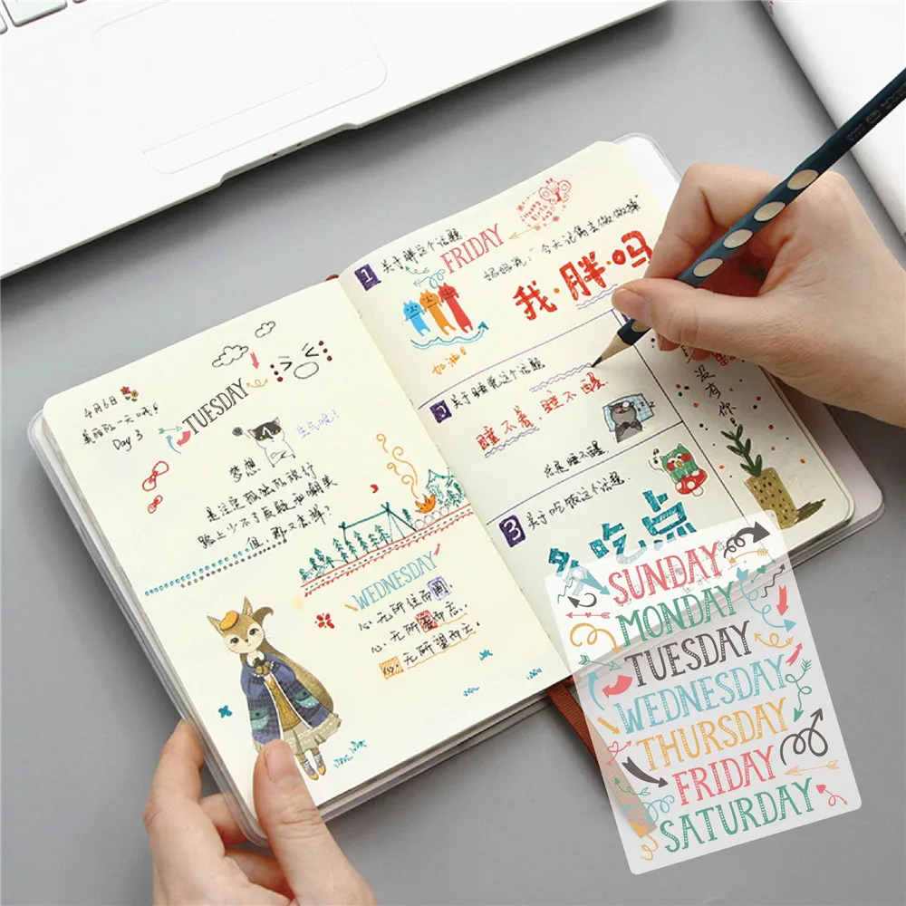 5 листовупаковка, самоклеящиеся наклейки с понедельника по воскресенье