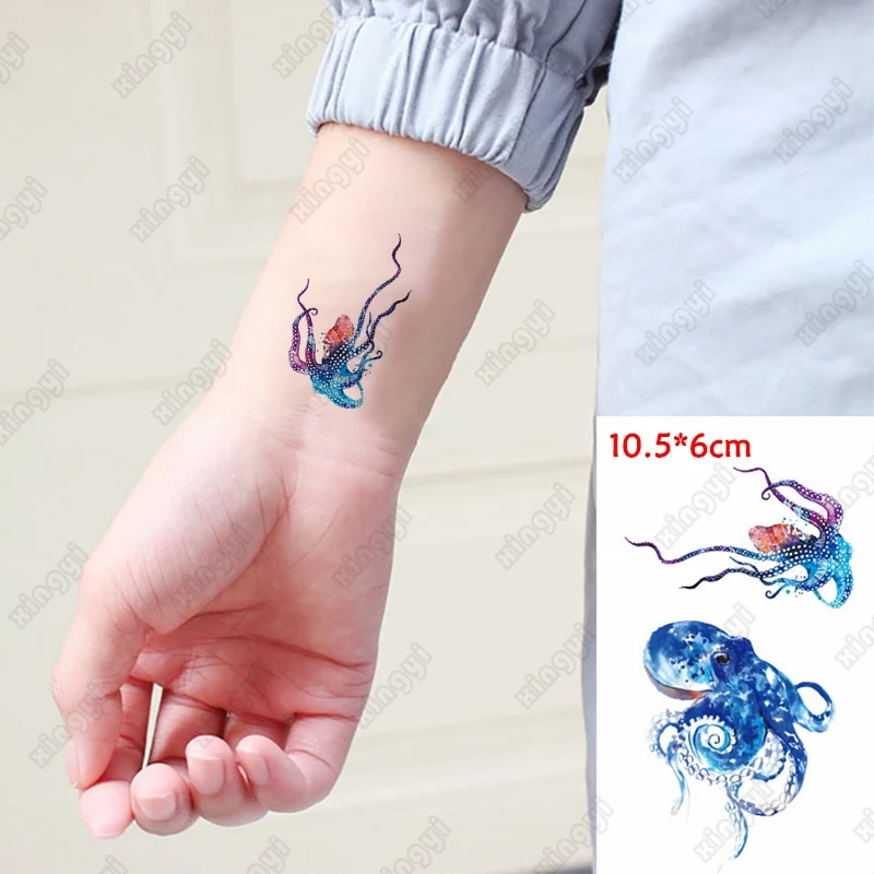 Водостойкие Временные татуировки-наклейки, цветные, морские, осьминоги, детские, для девочек, татуировки, имитация искусственной кожи для мужчин и женщин