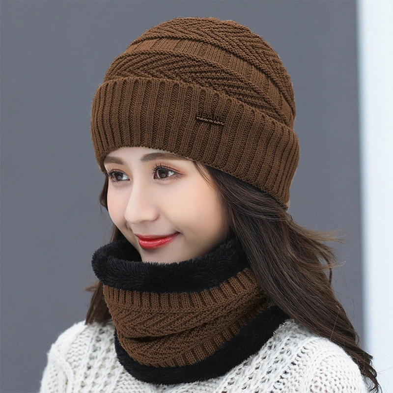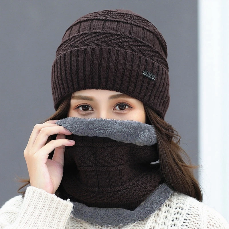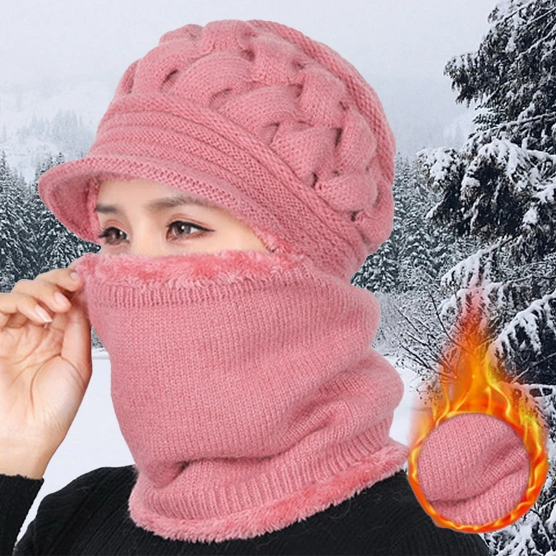 Женская вязаная шапка, шарф, шапки, Манишка, зимние женские шапочки, облегающие шапки, Теплая Флисовая шапка 6 цветов, женская зимняя 2019