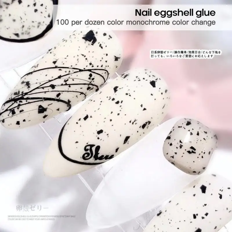 Художественный японский клей для ногтей в виде яичной скорлупы с разными цветами и стилями фона.
