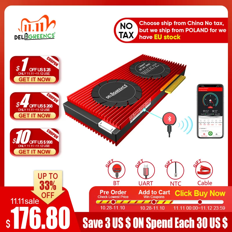 ProductShip From Poland 4S 8S 16S 200A 250A 48V Smart BMS For LifePO4 Battery With Bluetooth UART IOS Android APP For Lithium Battery Pack