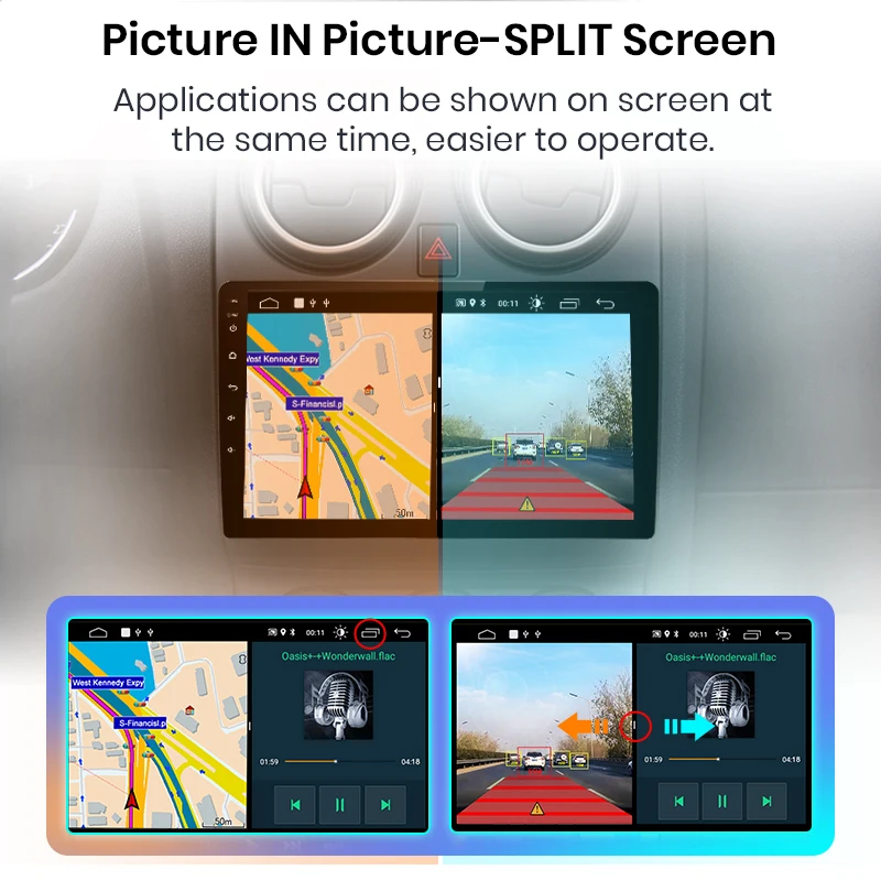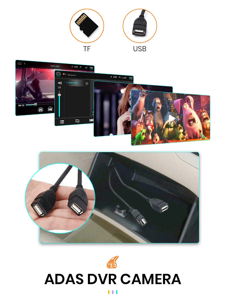 Когда автомобильное радио подключено к ADAS video recorder, это сделает передовую систему помощи при вождении, И предупредит вас, если ваш автомобиль слишком близко к переднему автомобилю или если ваш автомобиль отклоняется от полосы движения, чтобы помочь вашему вождению безопаснее и проще.