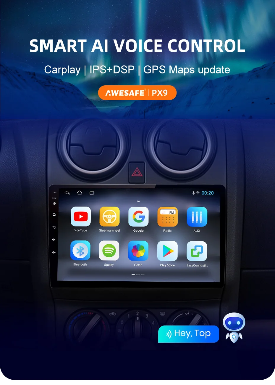 Автомагнитола AWESAFE PX9 для Nissan Qashqai J10 2006-2013, мультимедийный видеоплеер с голосовым ии, GPS, 2din, 2 din, Android 10,0, 2 ГБ + 32 ГБ