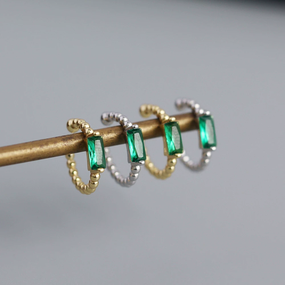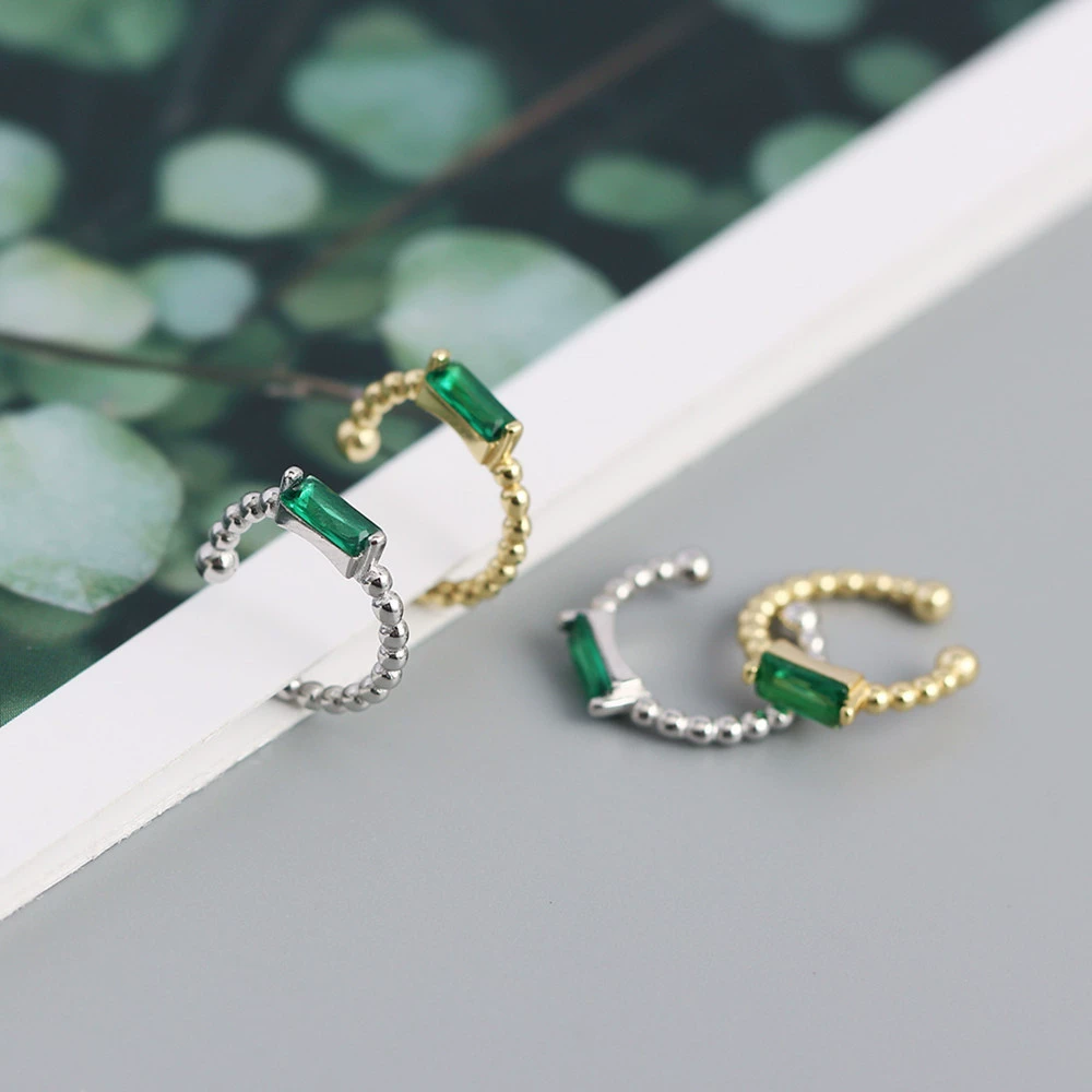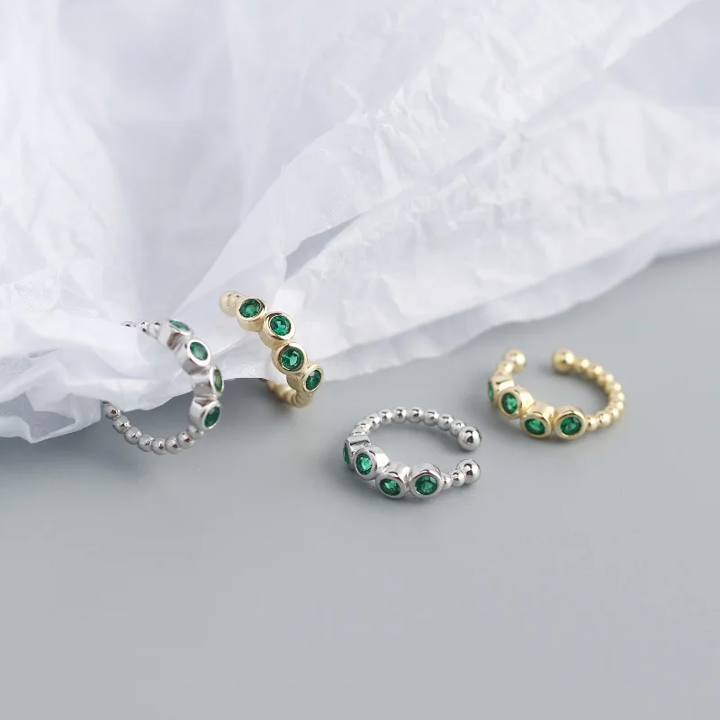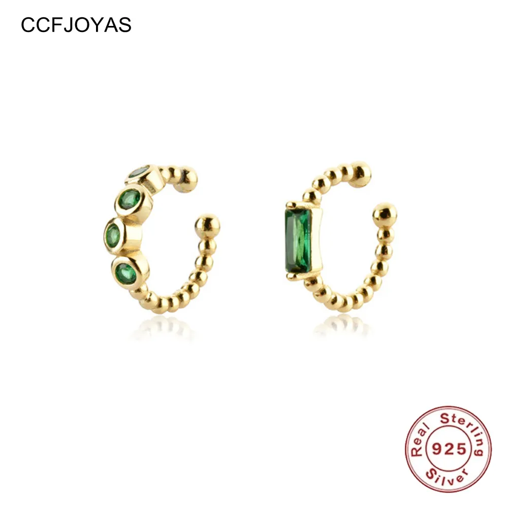 CCFJOYAS, 1 шт., серебро 925 пробы, цвет зеленый, серьги для женщин, цвет циркониевый зажим, манжеты для ушей без пирсинга