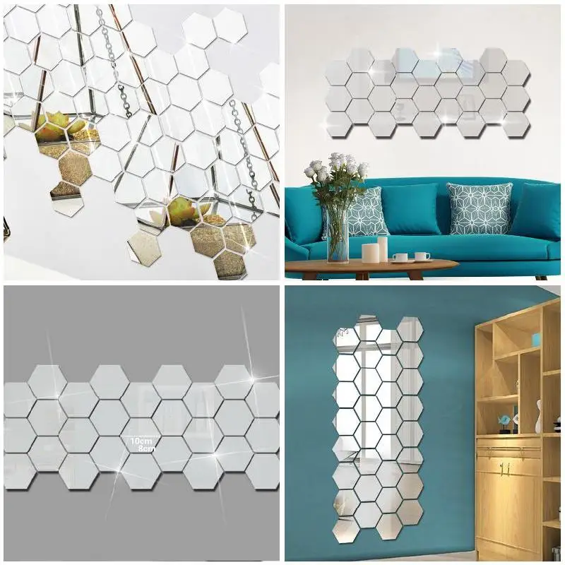 12 шт.компл. 3D зеркальная Шестигранная Зеркальная Наклейка для дом...