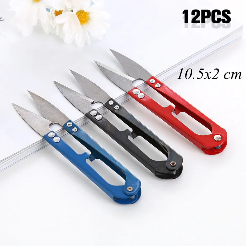 12 шт. многоцветные высококачественные U-образные ножницы из углеродистой стали, ножницы для лески, ножницы для стрижки лески, швейные ножницы