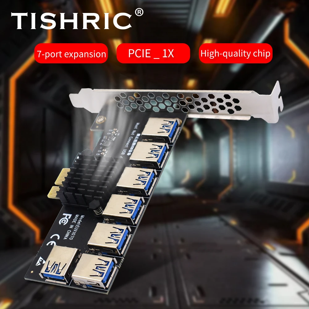 Адаптер усилителя TISHRIC PCI Express, Райзер от 1 до 4 PCI-E PCIE USB 3,0, Концентратор 1X X16, адаптер для майнинга BTC ETH, Райзер для майнинга, для видеокарты