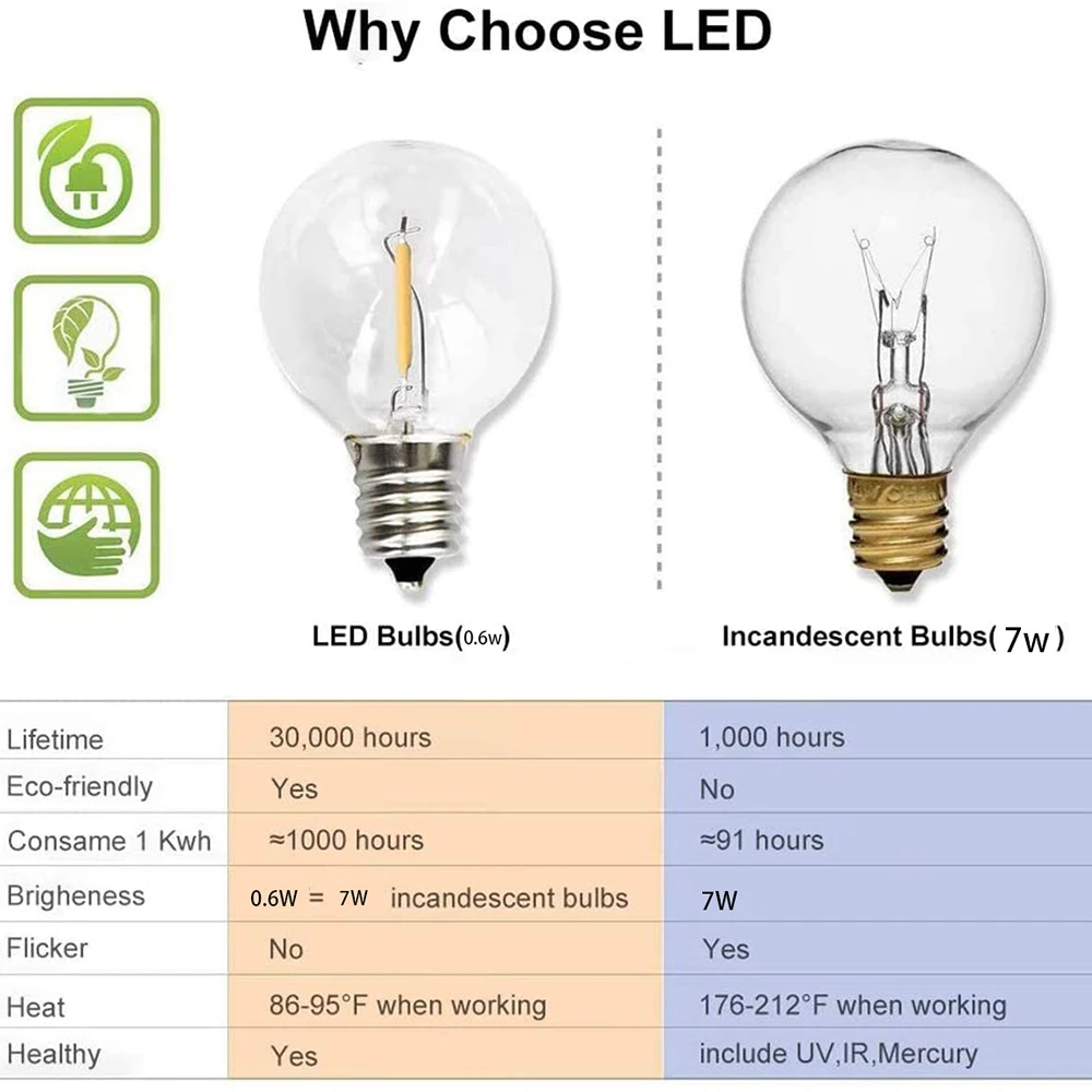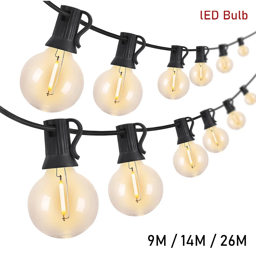 СВЕТОДИОДНАЯ Гирлянда G40 с круглыми лампочками, уличный декоративный шнурок с лампочками для рождественской вечеринки, сада, уличное освещение для внутреннего дворика, заднего двора, 1550
