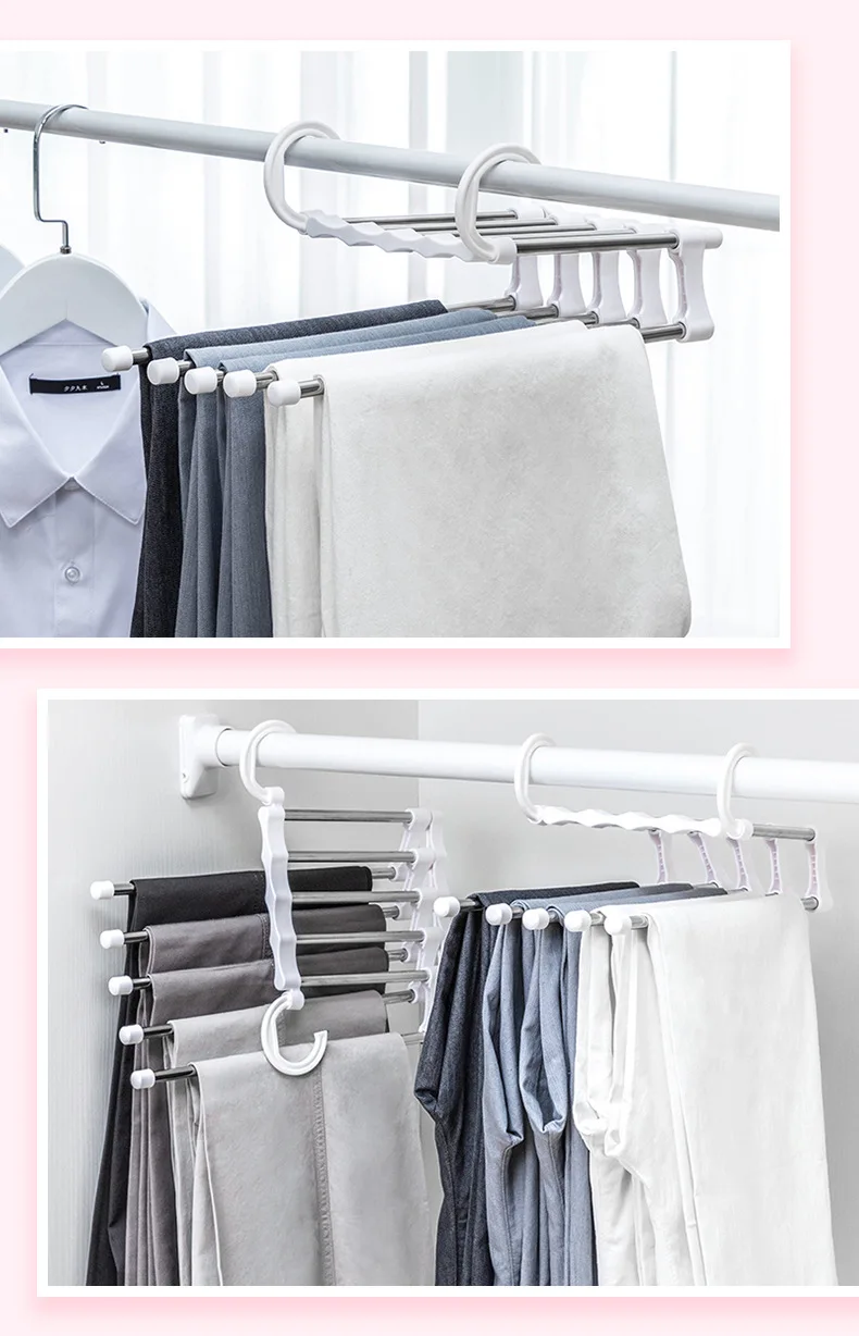 Регулируемые Волшебные вешалки для брюк, 5 в 1, из нержавеющей стали