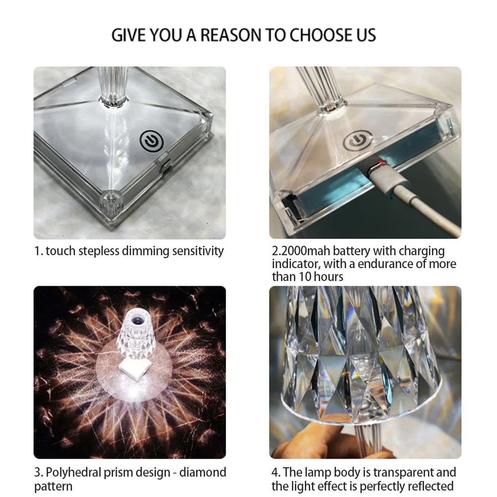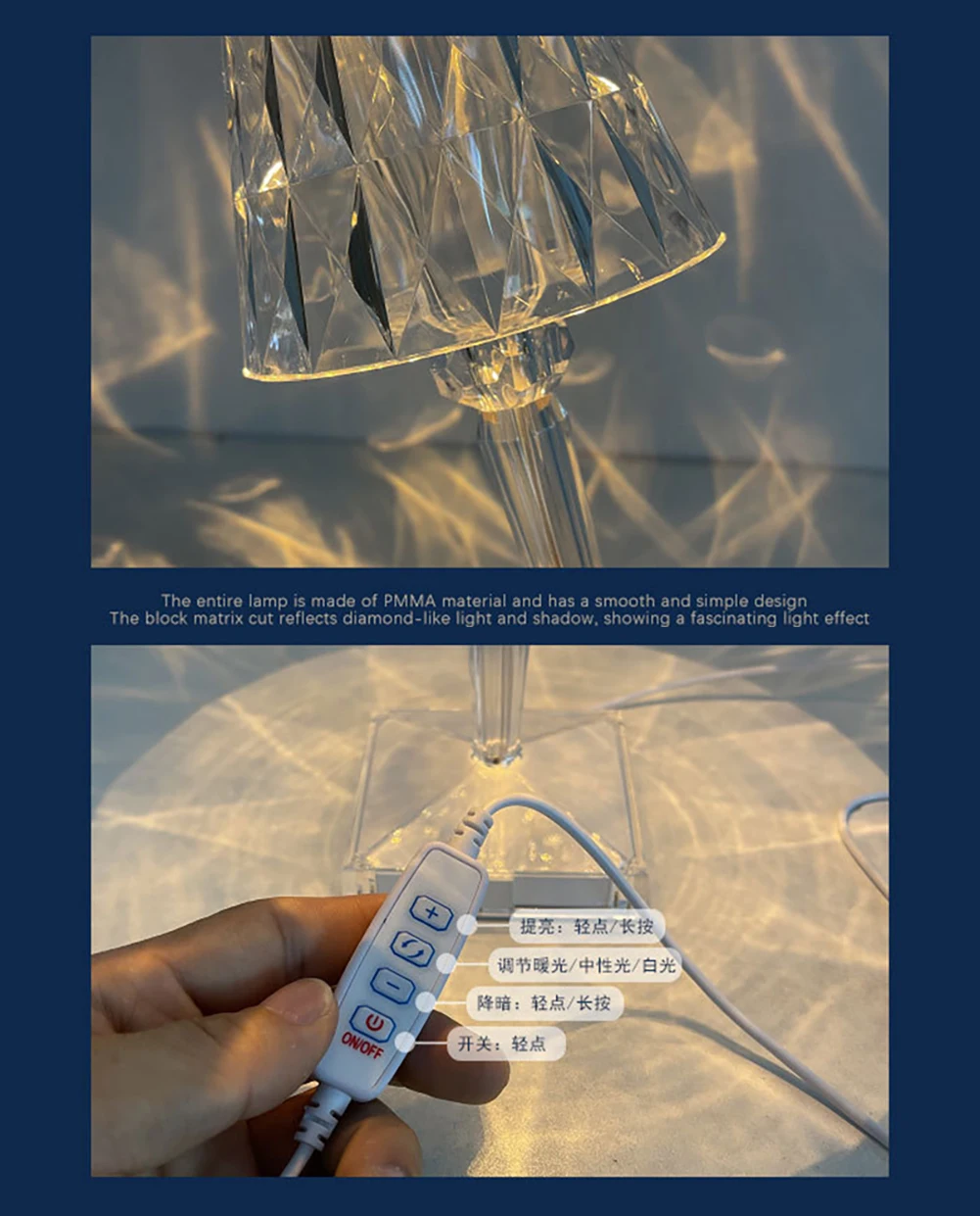 【Прозрачный корпус лампы 】 лучший новый акриловый материал, корпус лампы прозрачный, а многогранный дизайн призмы делает светильник сияющим как алмаз.