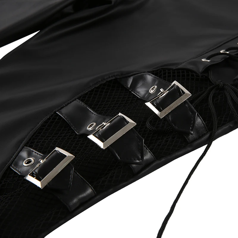 Сексуальные женские леггинсы из искусственной кожи на шнуровке, чер...