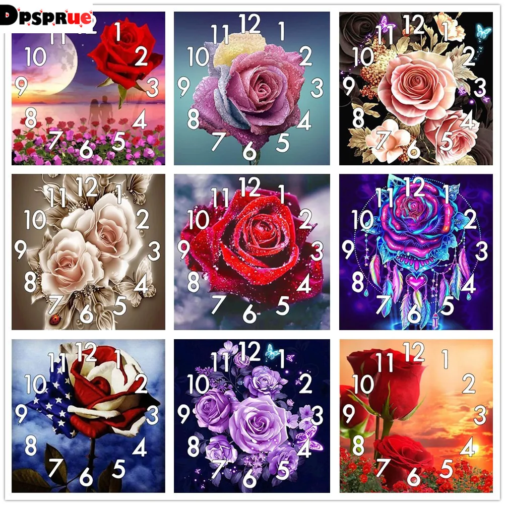 Полноформатная алмазная живопись Dpsprue, вышивка крестиком, роза, цветок, подарки, мозаика с часовым механизмом, 5D сделай сам, квадратная, круглая, 3d вышивка, подарок