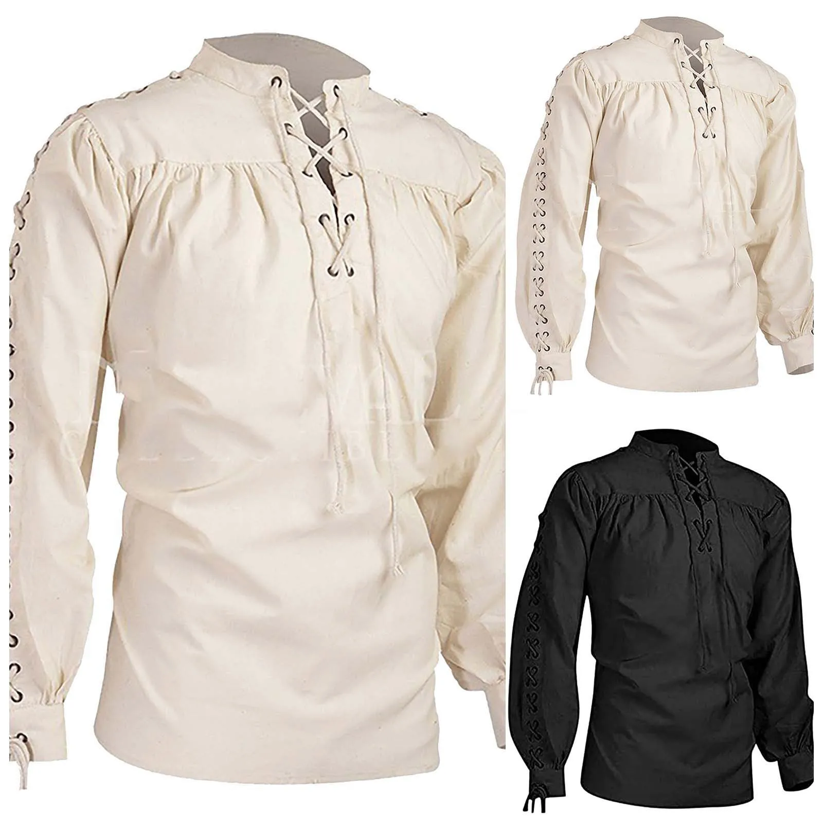 Мужская широкая рубашка с длинным рукавом, свободная рубашка в средневековом стиле, эпохи викторианской эпохи, стимпанк, готика, гофрированная рубашка, костюм для взрослых на Хэллоуин #4