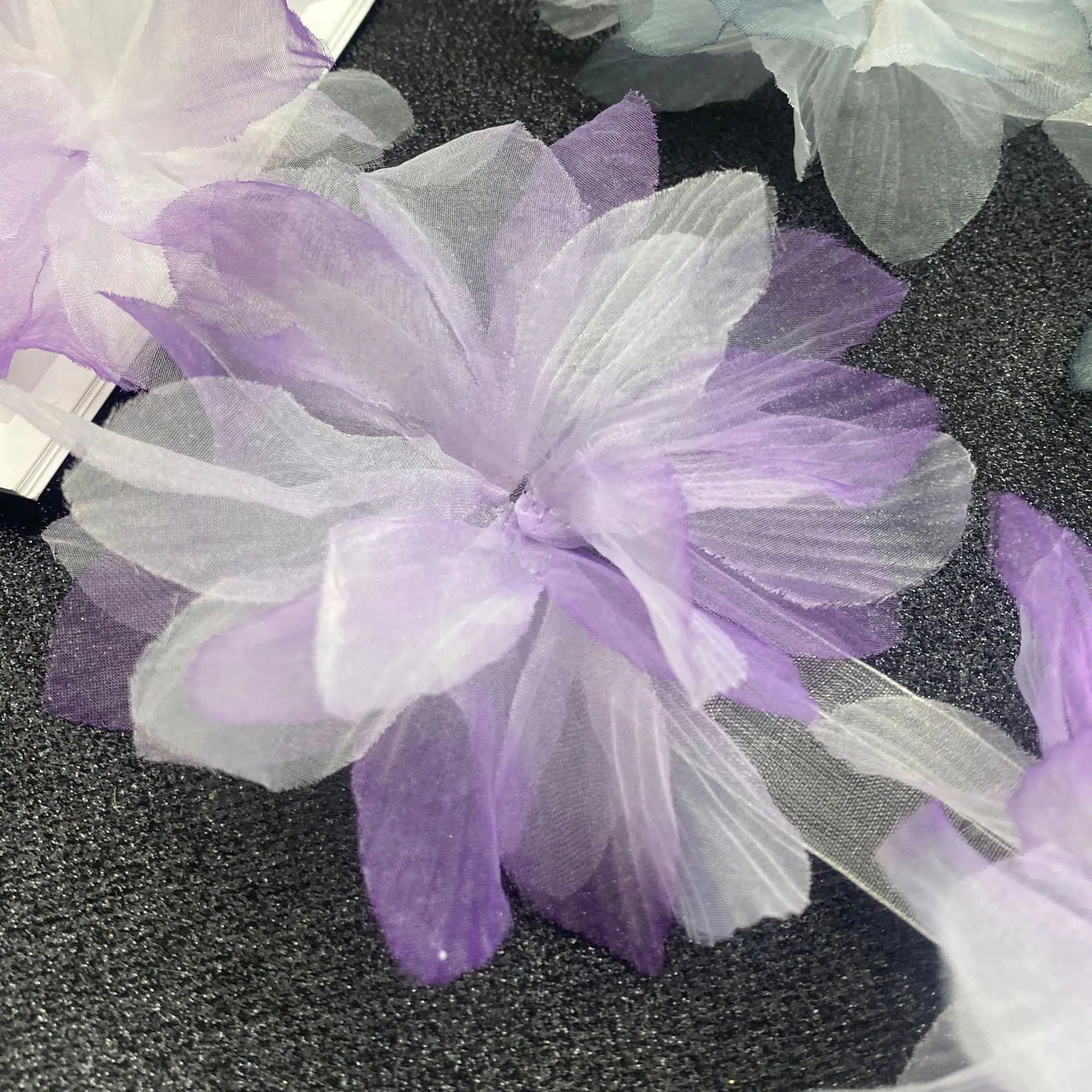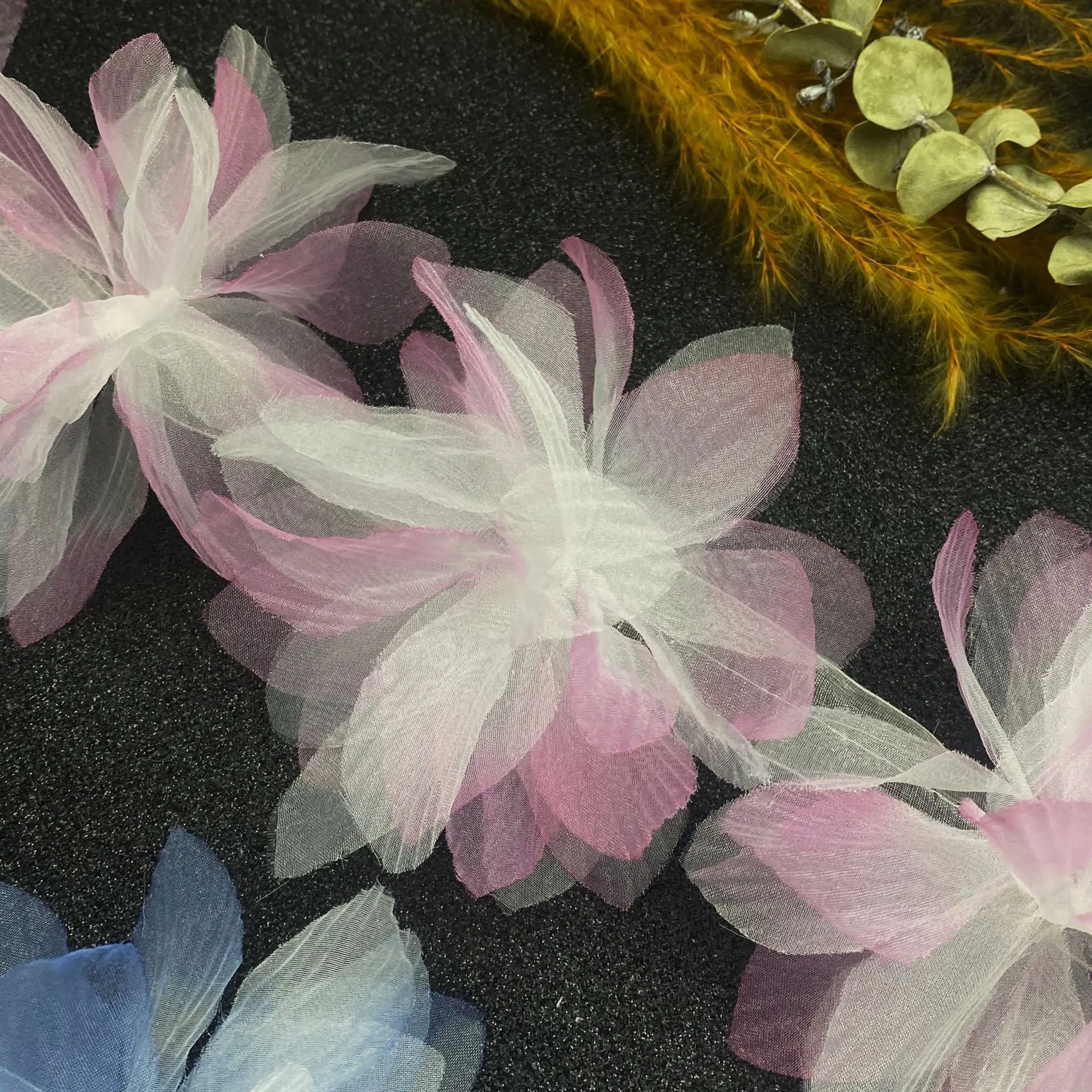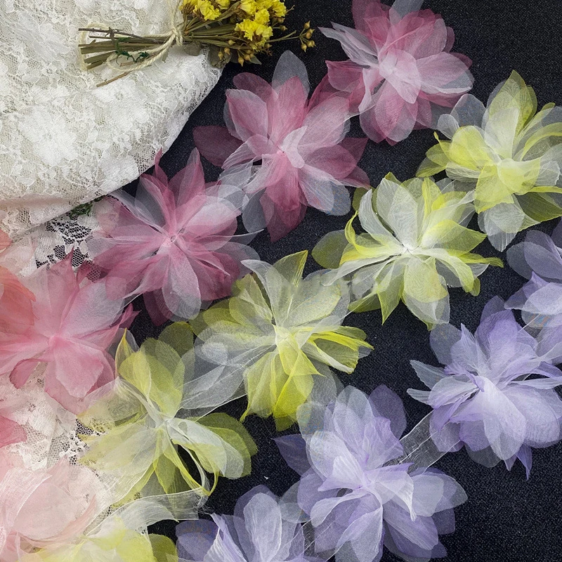 H790 10 см цветы 3D шифоновый кластер цветы кружевное платье свадебная Аппликация отделка украшения кружевные цветы принадлежности для шитья