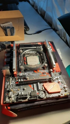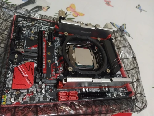 Заказ ехал чуть больше 2-х недель. Упаковано хорошо, коробка не помята. Процессор и память установлены. Комплект полностью рабочий, все запустилось с первого раза. В комплекте переходное кольцо для установки охлаждения проца и sata кабель. Материнка с двойным стартом, так что запускайте со вставленной батарейкой. Запустил с Linux Mint LiveCD, m.2 sata диск видит. Продавца советую.