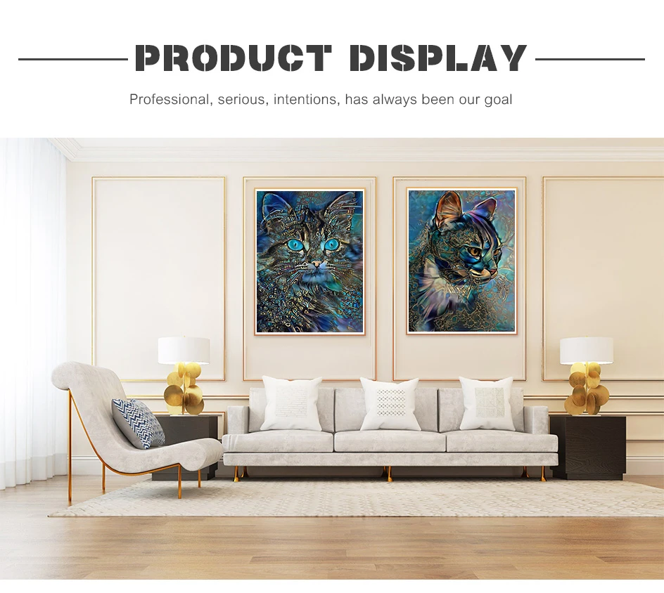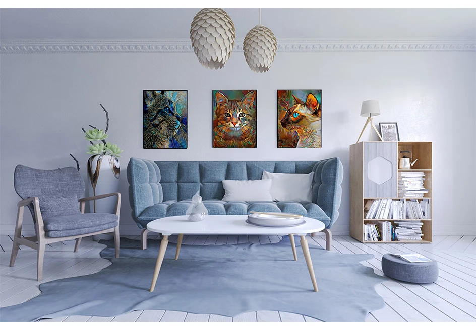 Алмазная вышивка с квадратнымикруглыми стразами, картина с кошками,...