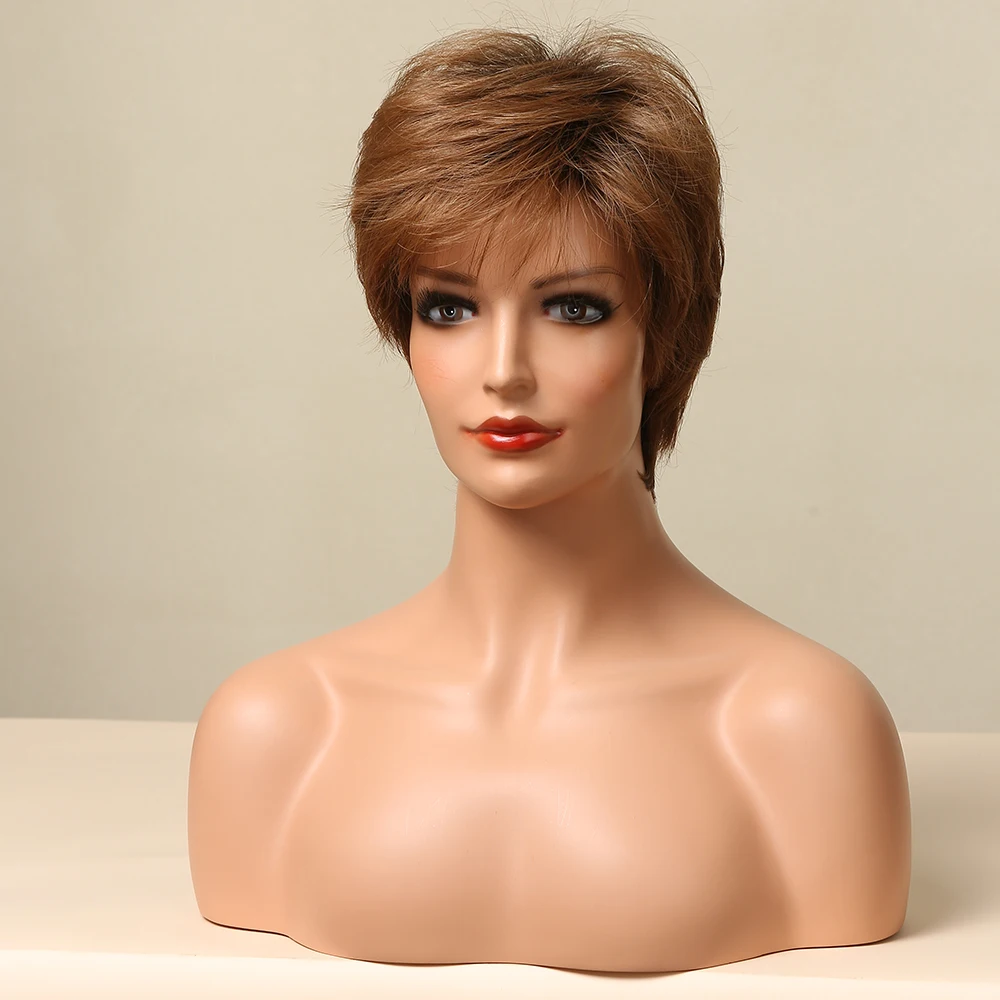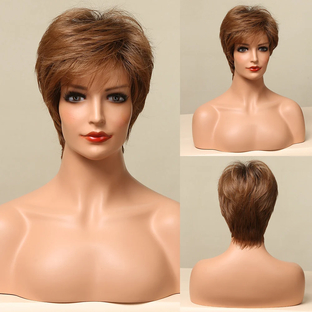 Короткие коричневые парики LOUIS FERRE, синтетические парики с челк...