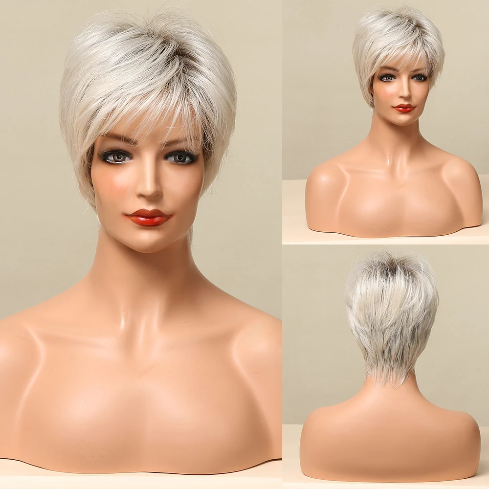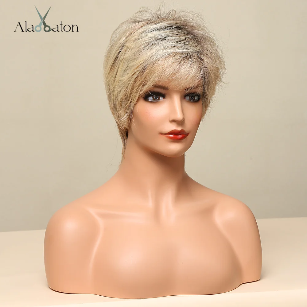 Парики короткие прямые с челкой, синтетические светлые повседневные...
