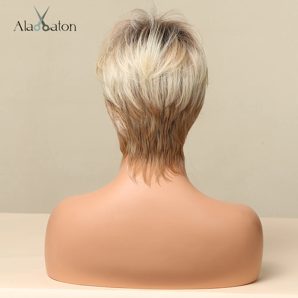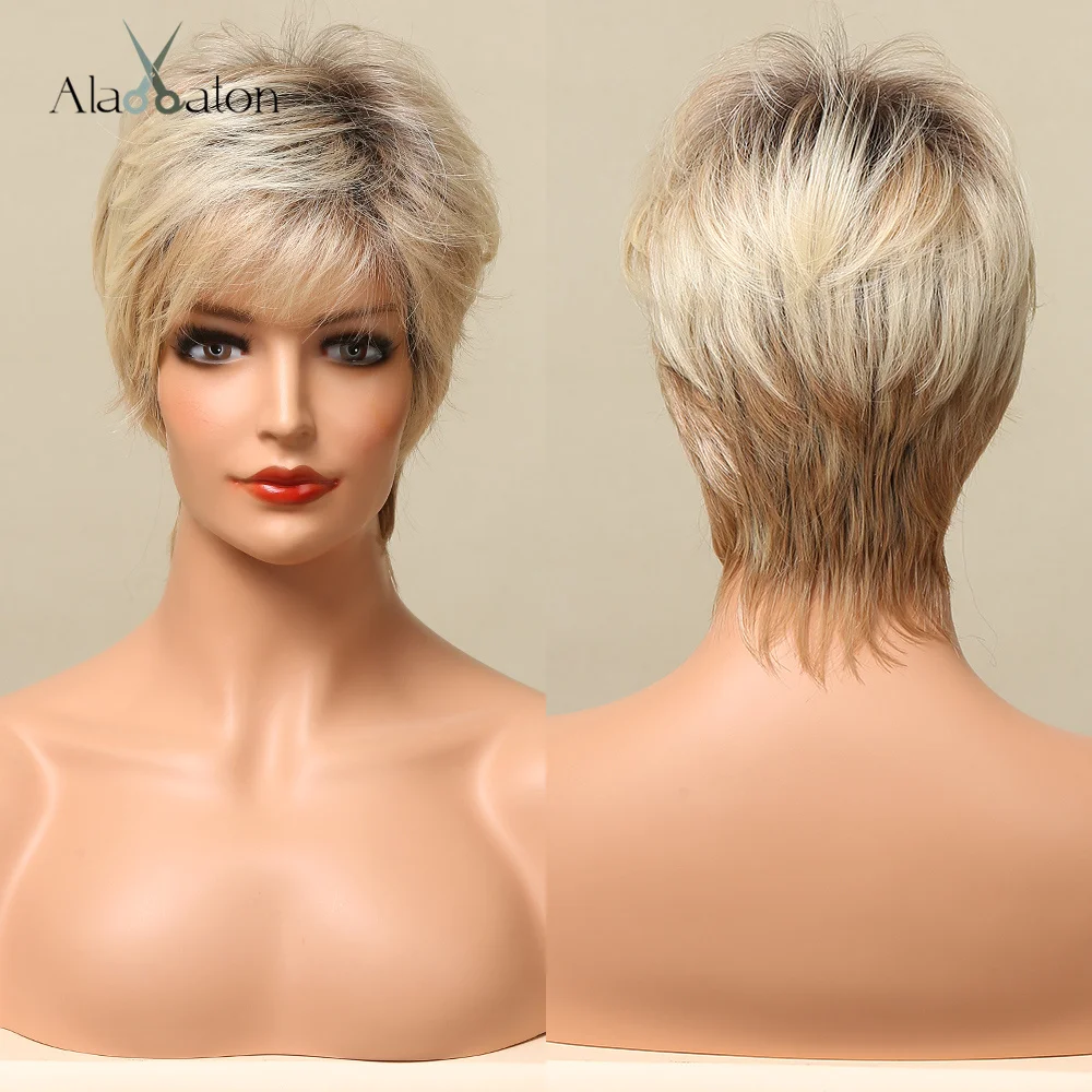 Короткие парики ALAN EATON с темными корнями Омбре, коричневые, светлые, с челкой, пушистый синтетический парик с вырезами фальшивой, для чернокожих женщин, термостойкие